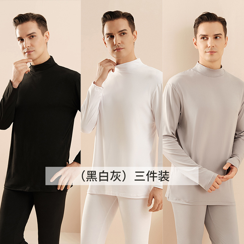 남성 티셔츠 가을 새로운 히알루 론산 긴팔 가을 의류 겨울 따뜻한 열 저장 하프 터틀넥 슬림 바닥 셔츠