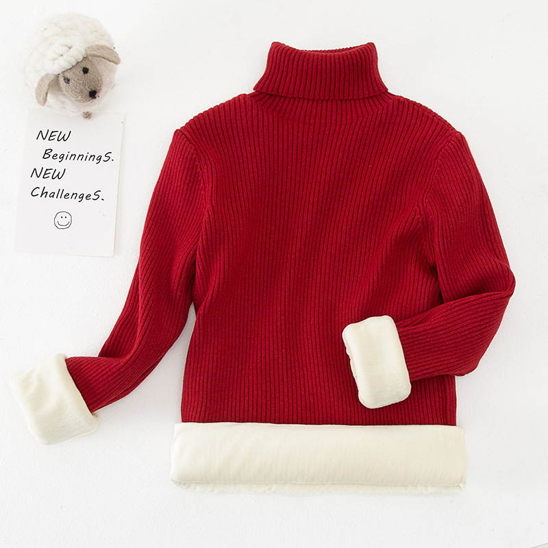 2025 가을 겨울 한국 남녀 아동용 하이넥 풀오버 스웨터 니트웨어 베이스 셔츠 플리스 안감 한국 스타일 아동복스토어 가기