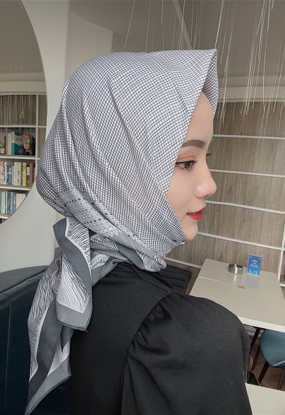 아마존 공급 90*90cm 대형 사각 타월 트릴 새틴 거즈 기계 인쇄 대형 사각 스카프 스카프스토어 가기