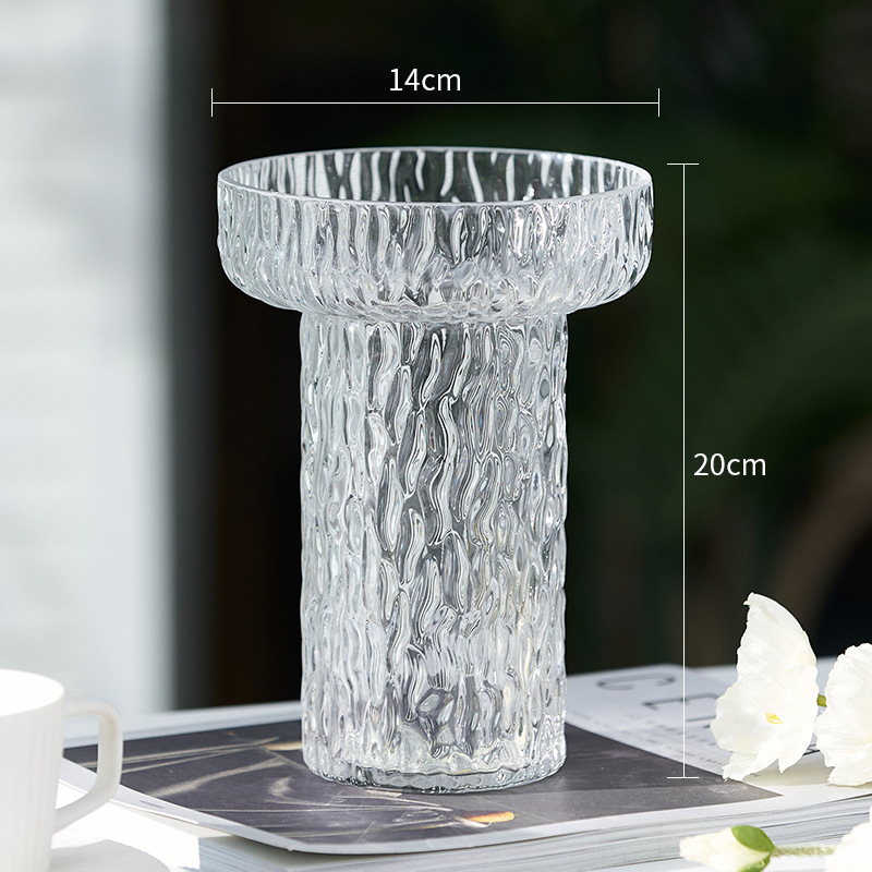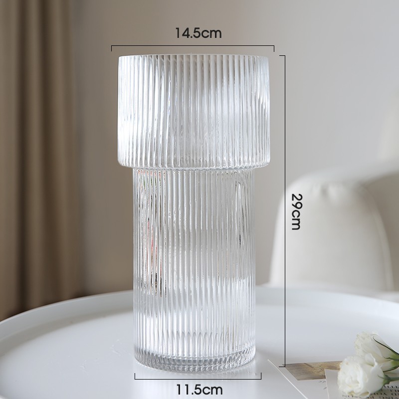간단한 수직 패턴 토치 유리 꽃병 대구경 수경 투명 장식 거실 장식품 꽃병 공장 도매스토어 가기