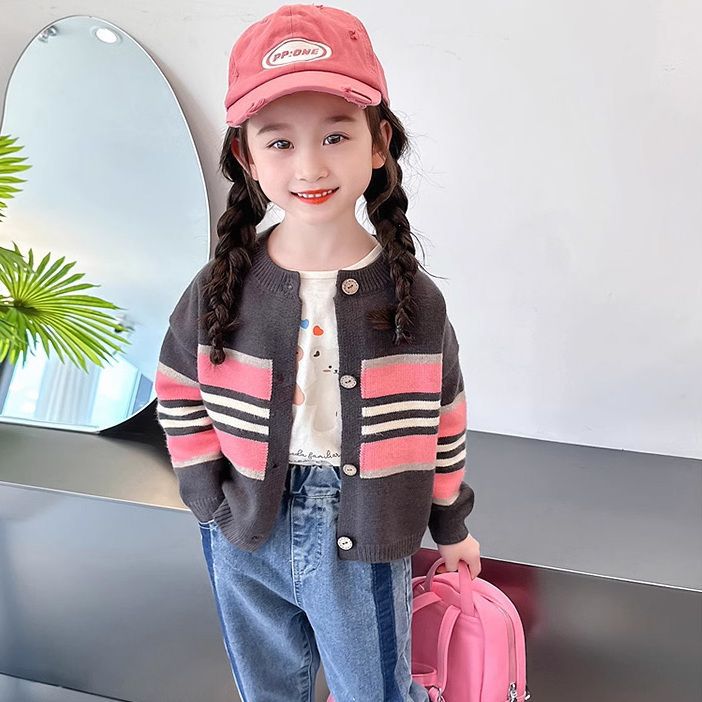 소녀 스웨터 코트 봄 2025 새로운 어린이 가을과 겨울 서양식 캐주얼 탑 아기의 세련된 니트 카디건스토어 가기