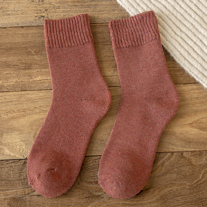 가을과 겨울 양말 여자 양말 따뜻한 단색 느슨한 테리 양말 기모 두꺼운 여자 양말 눈 수건 양말