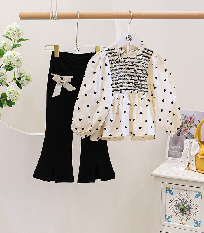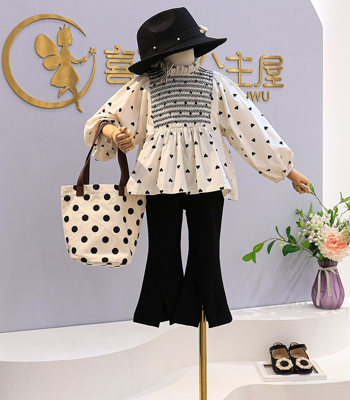 Ancorelala 아동 의류 가을 새 여자 패션 폴카 도트 아기 인형 탑 벨 바닥 투피스 세트