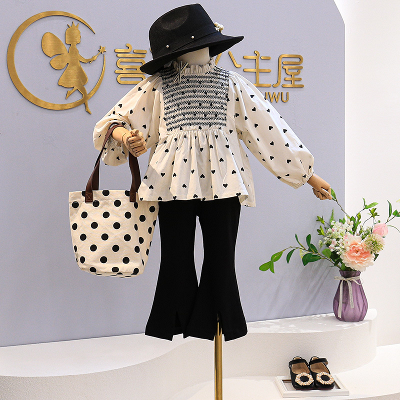 Ancorelala 아동 의류 가을 새 여자 패션 폴카 도트 아기 인형 탑 벨 바닥 투피스 세트스토어 가기