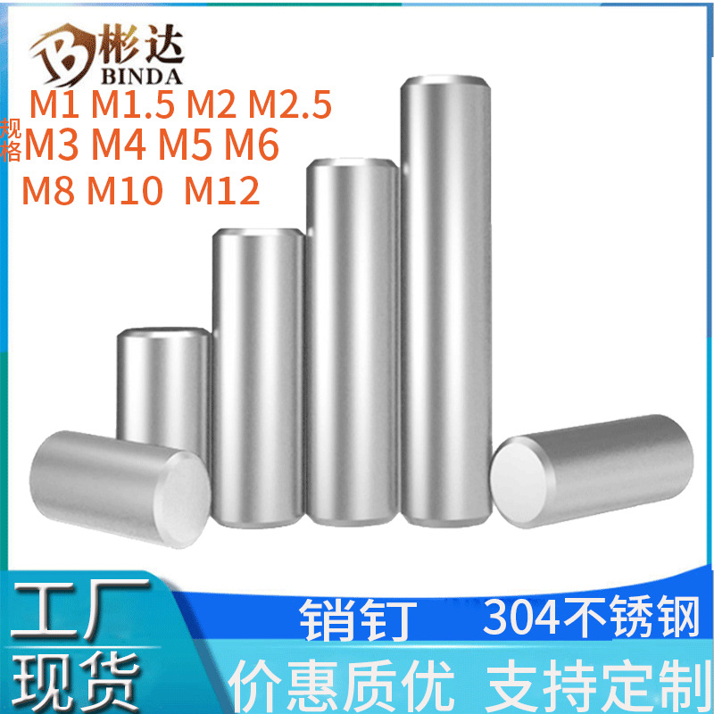 • 实心销钉304不锈钢销轴M1定位销子批发销及键M2光亮棒固定圆柱销
