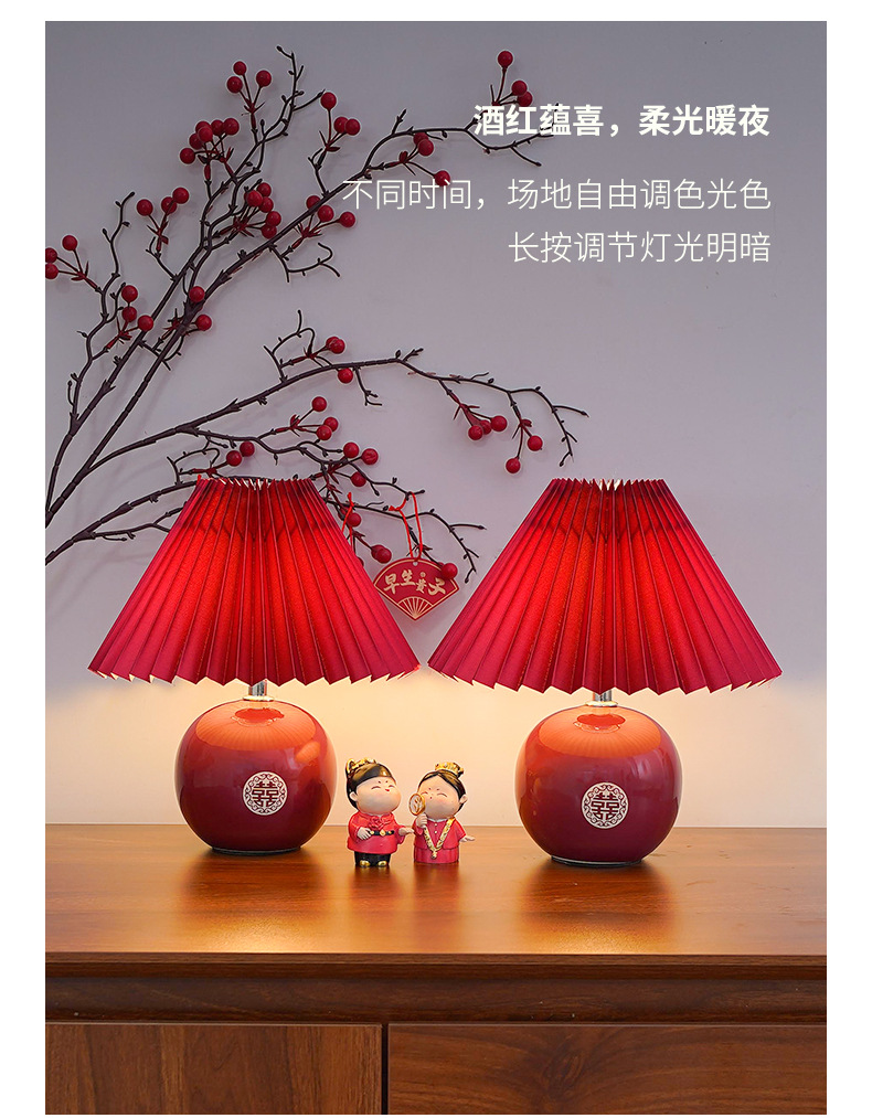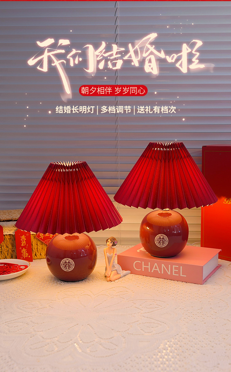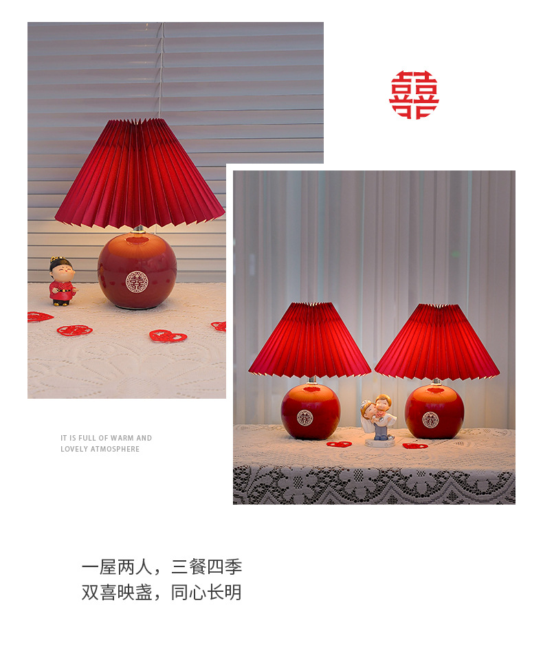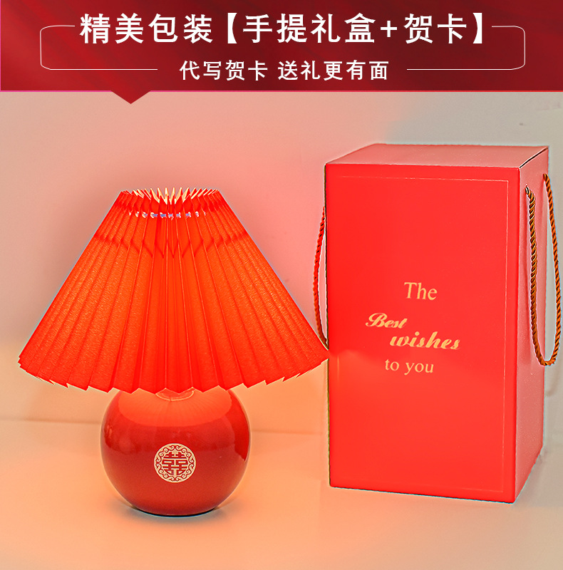 결혼식 테이블 램프 장식 결혼식 방 침실 침대 옆 램프 세라믹 행복 문자 붉은 상풍 램프 동반 결혼식 밤 빛 선물