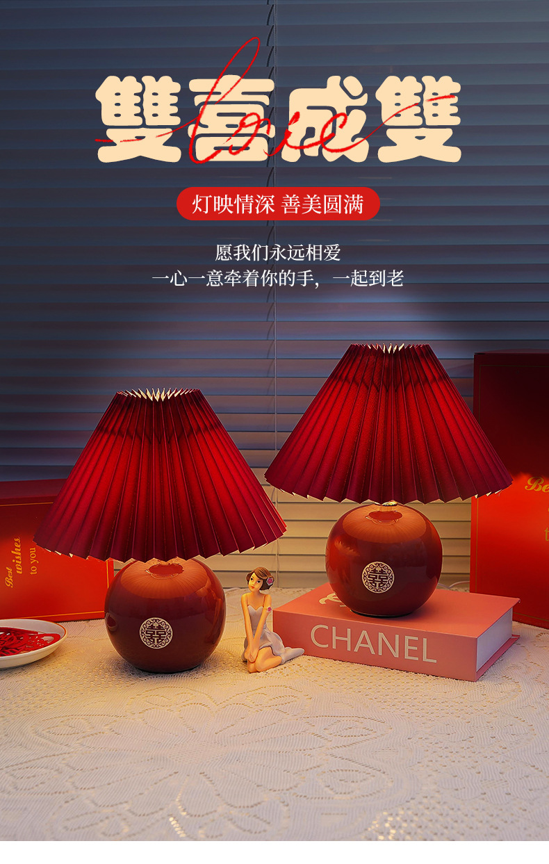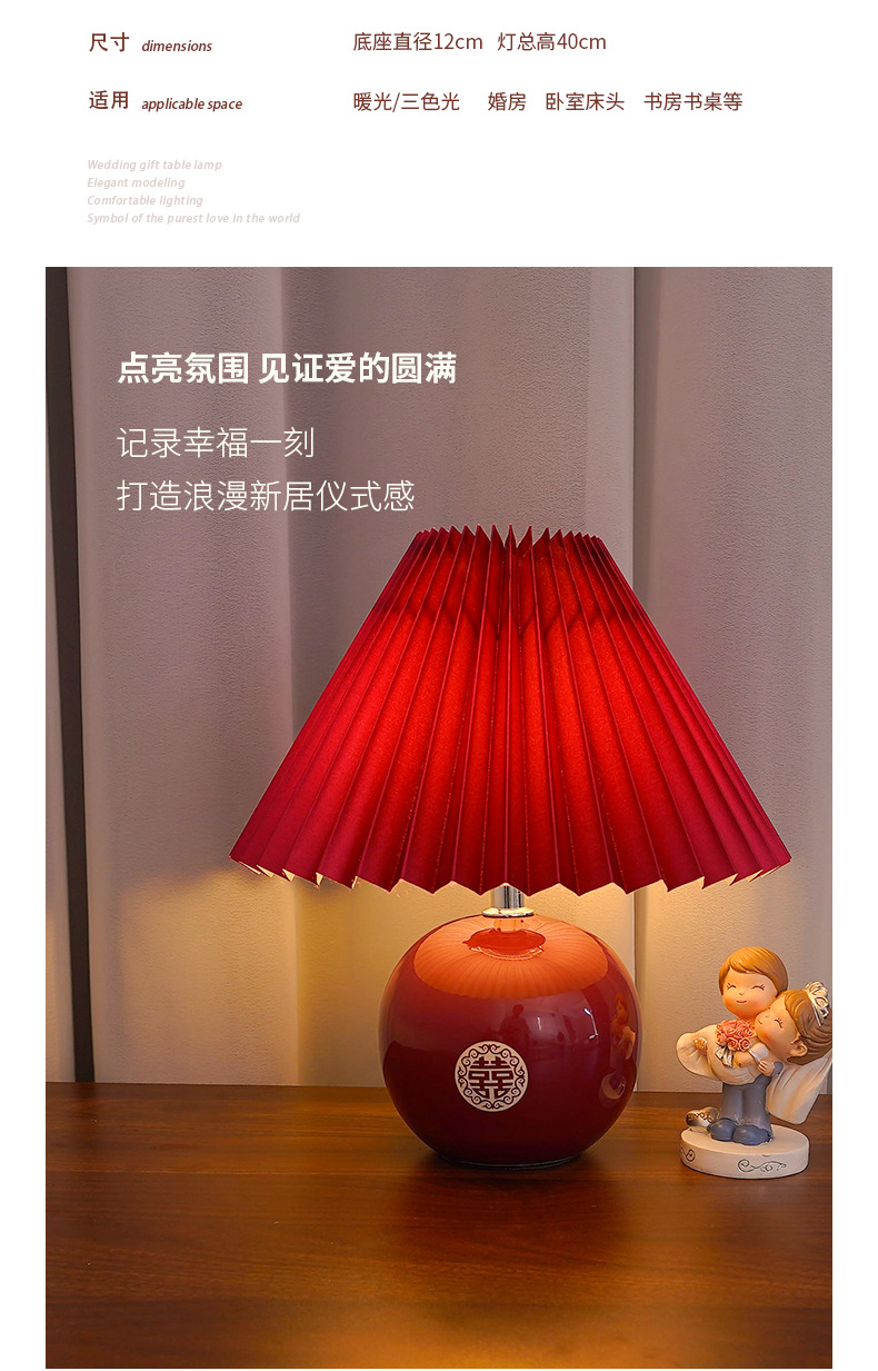 결혼식 테이블 램프 장식 결혼식 방 침실 침대 옆 램프 세라믹 행복 문자 붉은 상풍 램프 동반 결혼식 밤 빛 선물스토어 가기