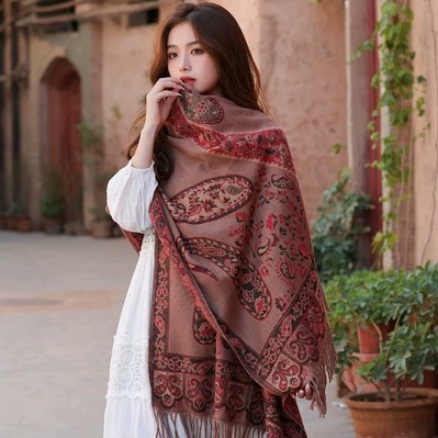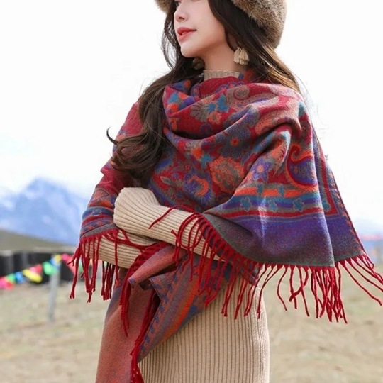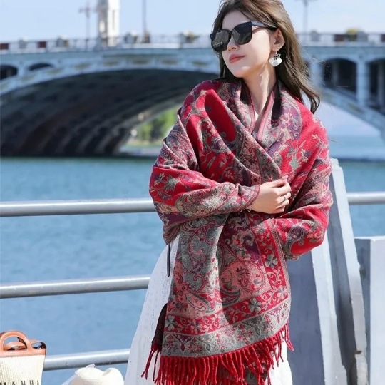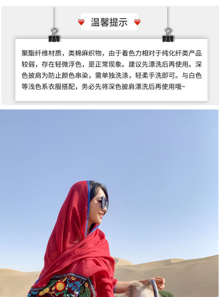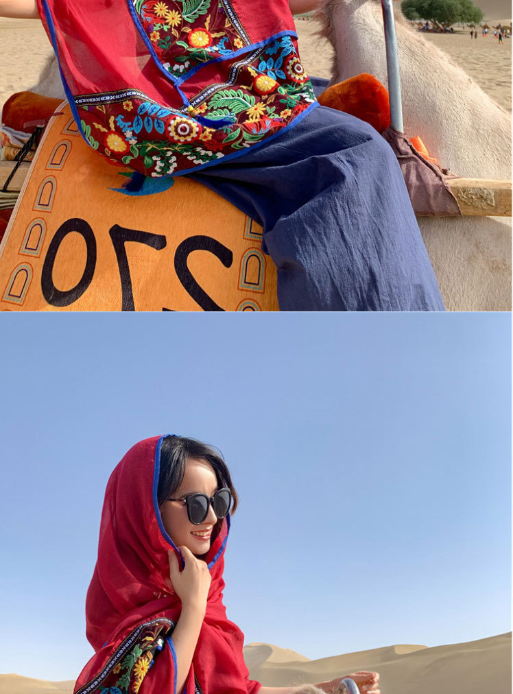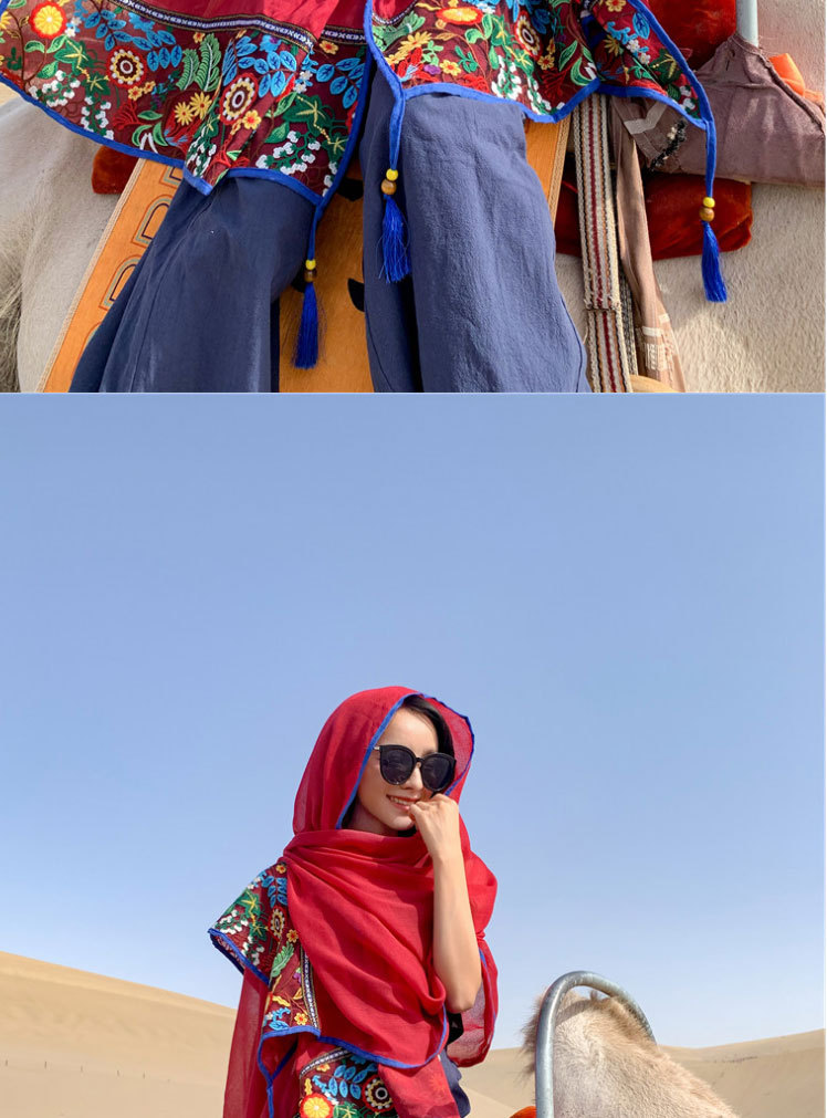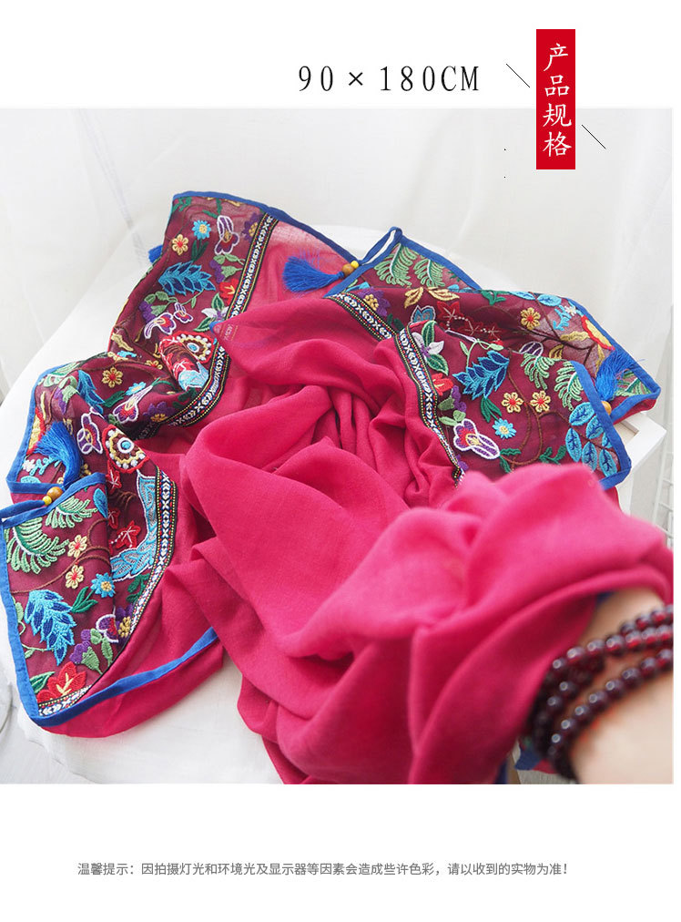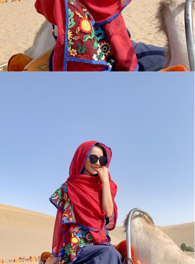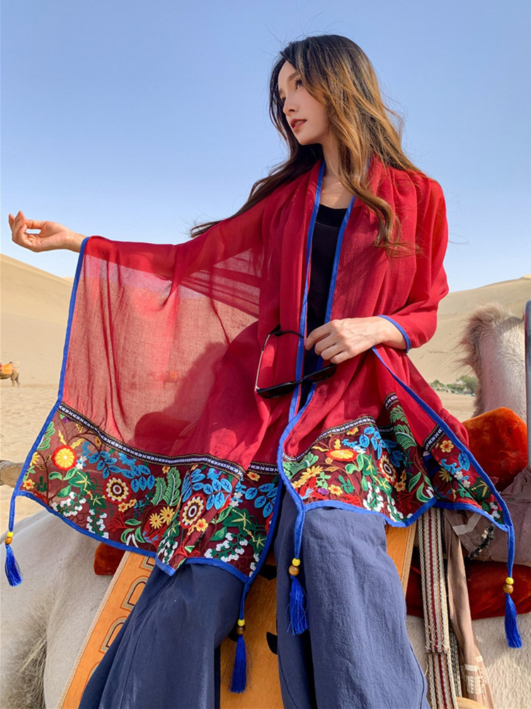 여행 휴일 스카프 여성의 여름 긴 외부 양산 에스닉 스타일 레드 경량 스카프 대형 자외선 차단제 숄