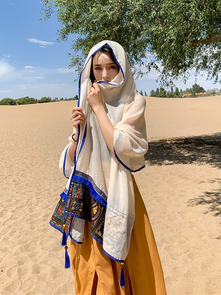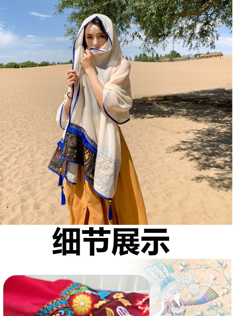 여행 휴일 스카프 여성의 여름 긴 외부 양산 에스닉 스타일 레드 경량 스카프 대형 자외선 차단제 숄스토어 가기