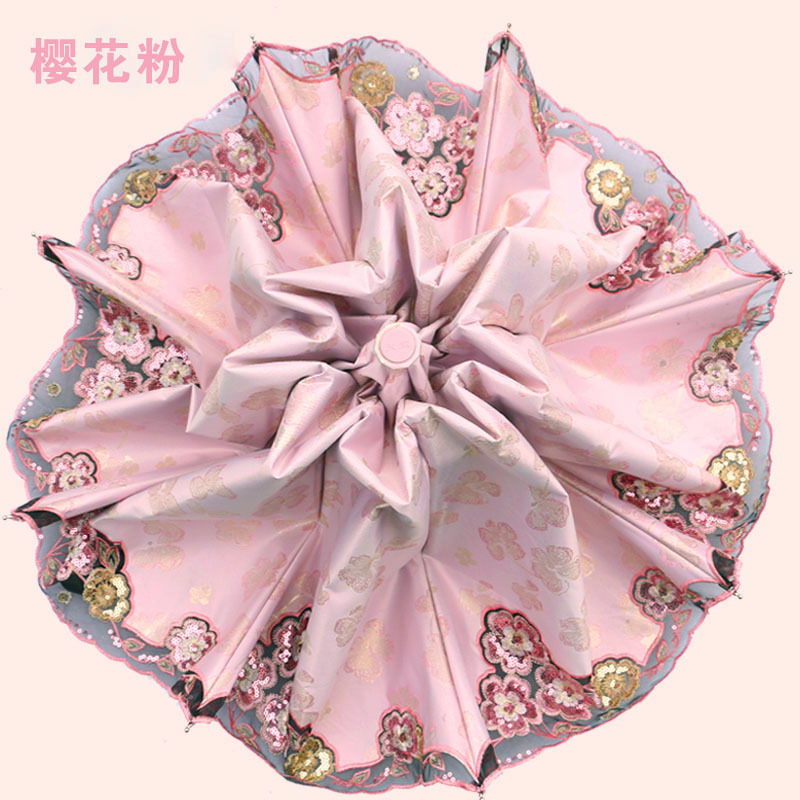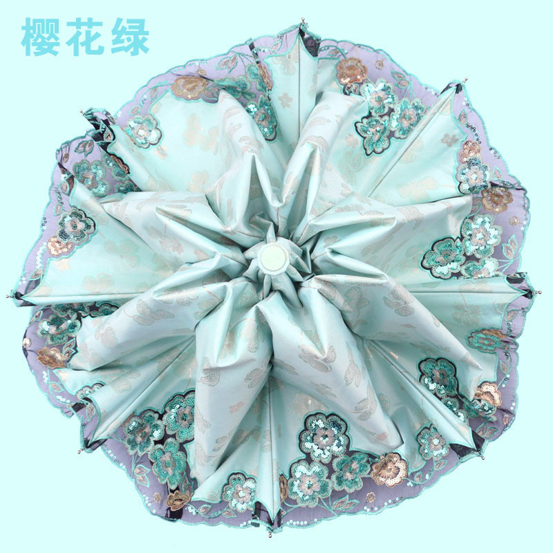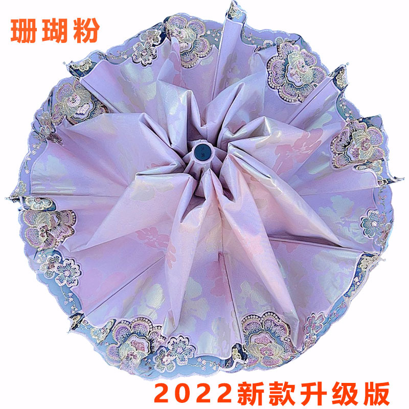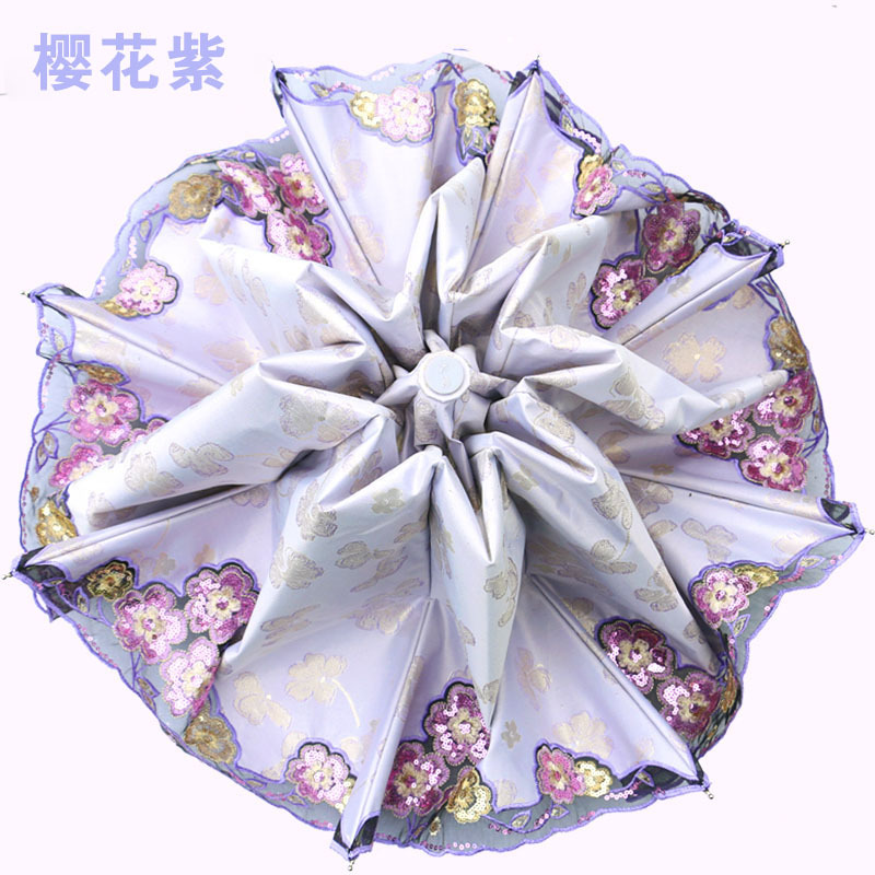정품 파라다이스 우산 새로운 비닐 자외선 차단제 UV 레이스 이중 사용 써니 우산 접는 써니 우산 여성을위한스토어 가기