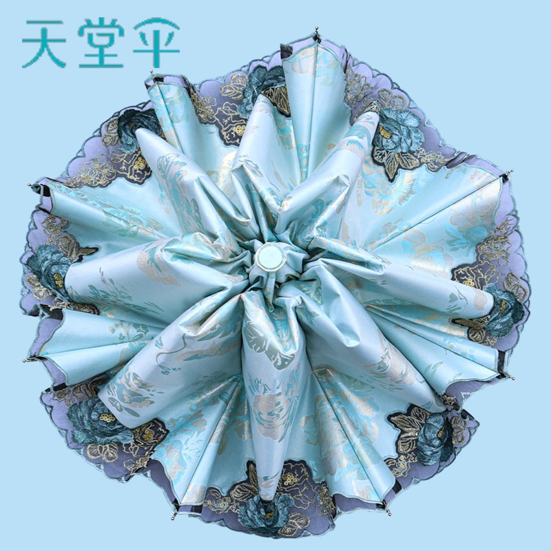 정품 파라다이스 우산 새로운 비닐 자외선 차단제 UV 레이스 이중 사용 써니 우산 접는 써니 우산 여성을위한