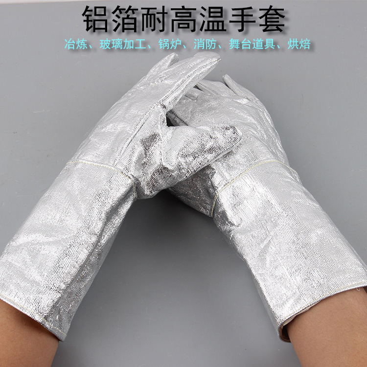 500 도 단열 산업용 방사 연장 두꺼운 화상 방지 난연 고온 내성 알루미늄 호일 다섯 손가락 노동 장갑