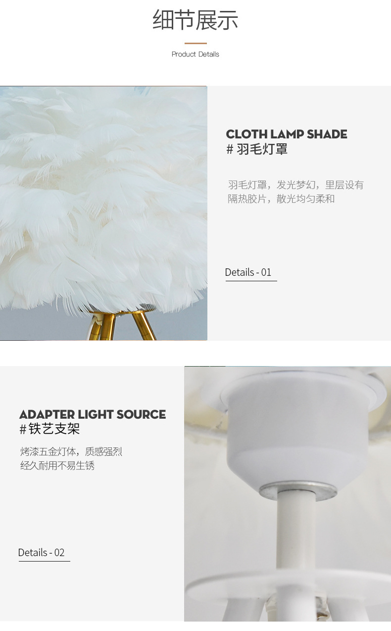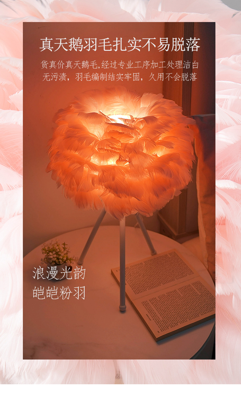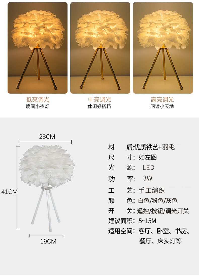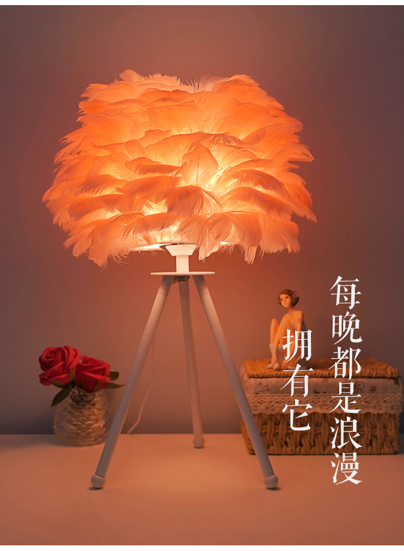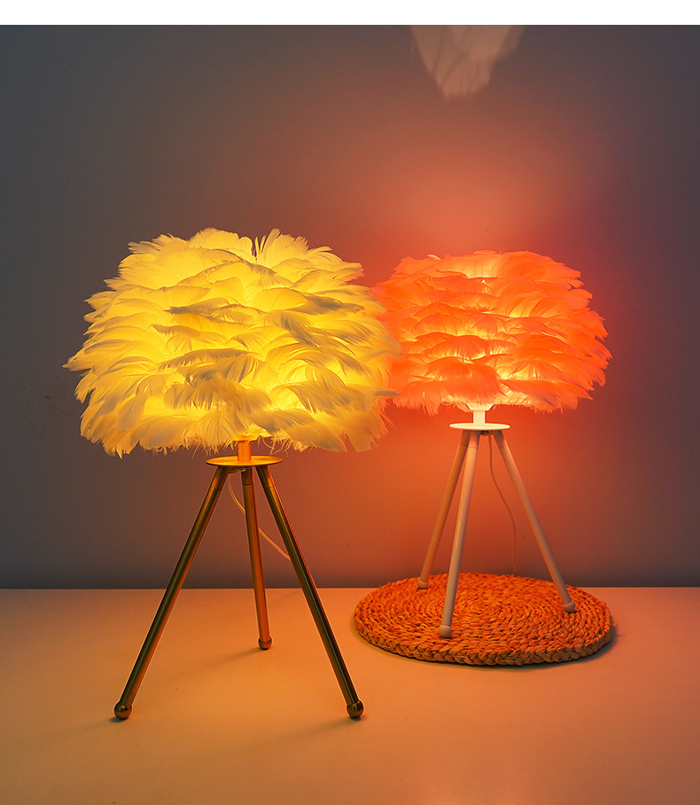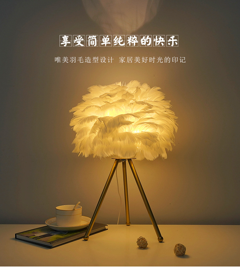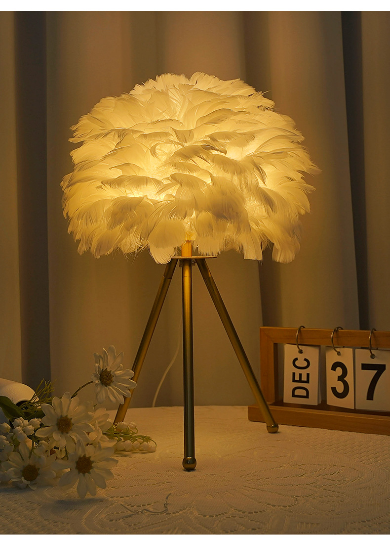 북유럽 스타일 장식 깃털 테이블 램프 침실 침대 옆 램프 분위기 있는 민슈쿠 ins 소녀 감성 깃털 램프 해외 인기 상품