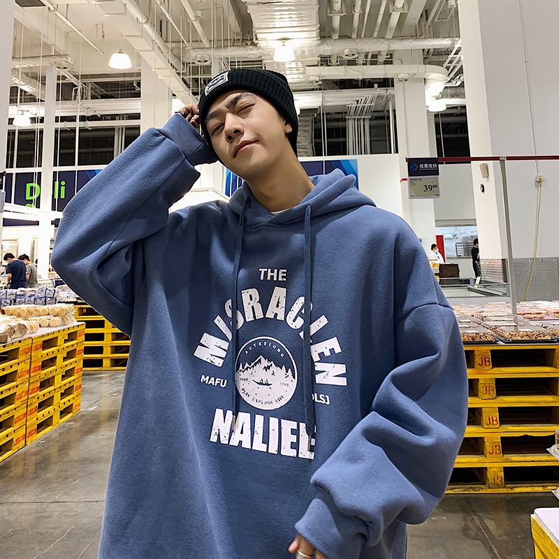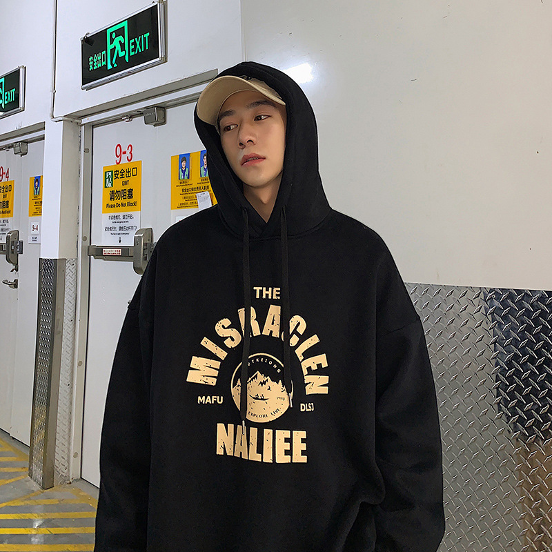 连帽卫衣男生秋季宽松百搭上衣韩版潮加绒ins港风cec休闲外套慵懒