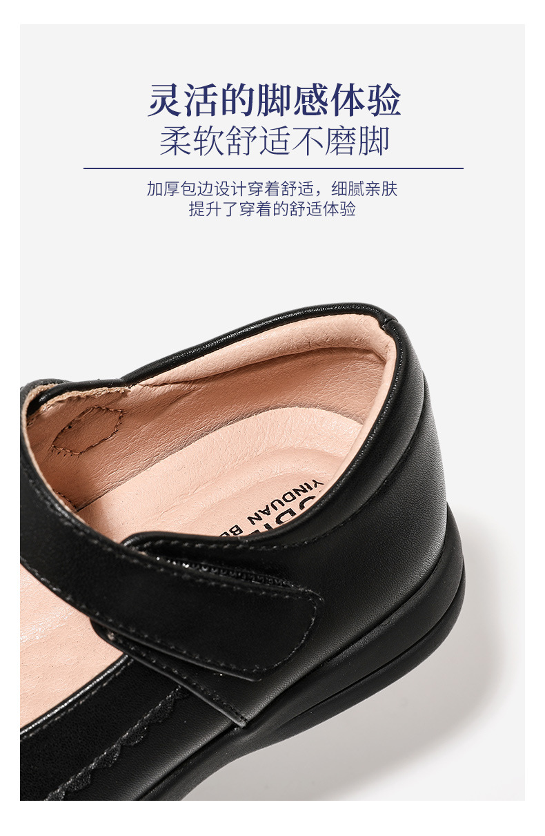 여자 가죽 신발 새로운 스타일 부드러운 밑창 공주 싱글 레이어 신발 소녀와 학생을위한 어린이 블랙 영어 스타일 플랫 솔 신발
