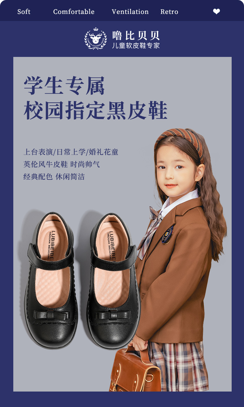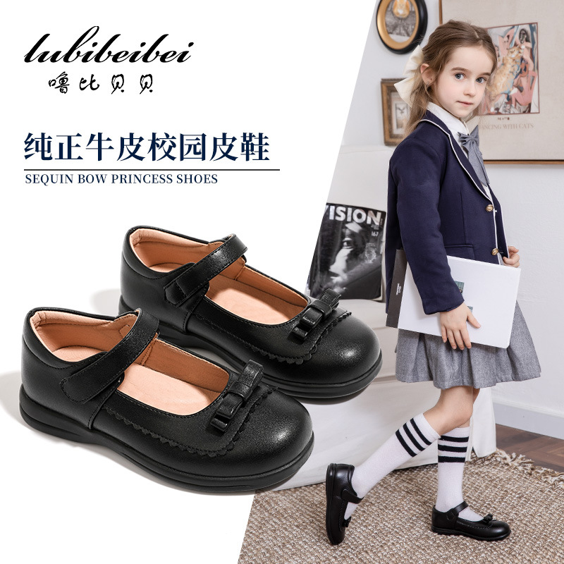 여자 가죽 신발 새로운 스타일 부드러운 밑창 공주 싱글 레이어 신발 소녀와 학생을위한 어린이 블랙 영어 스타일 플랫 솔 신발스토어 가기