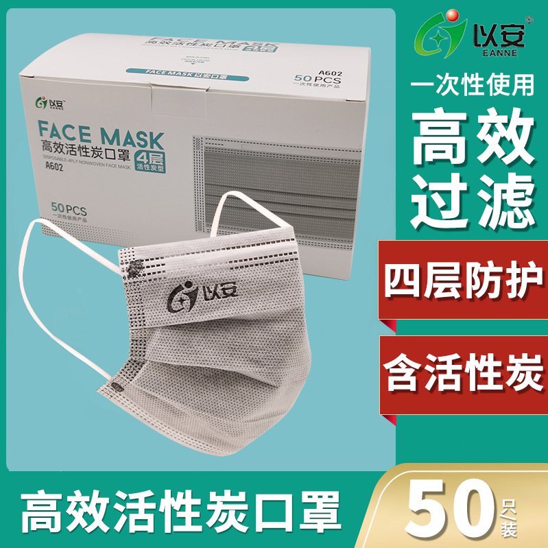 A602 활성탄 마스크 4 층 일회용 마스크 비 독립적 인 포장 포름 알데히드 냄새 및 방진 성인