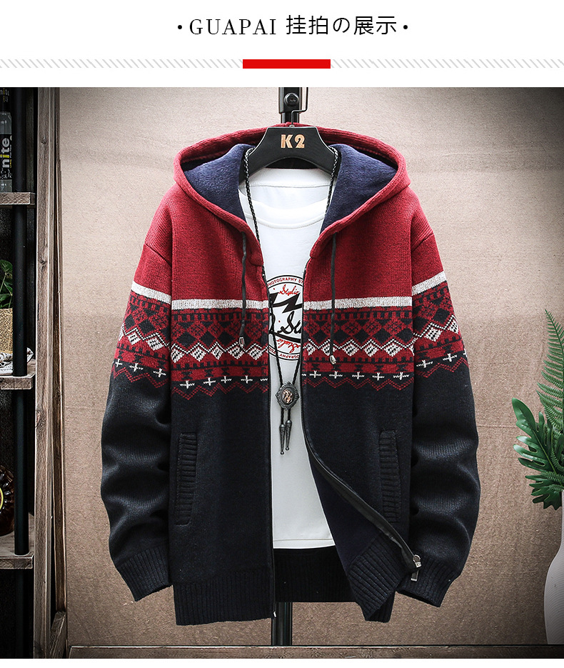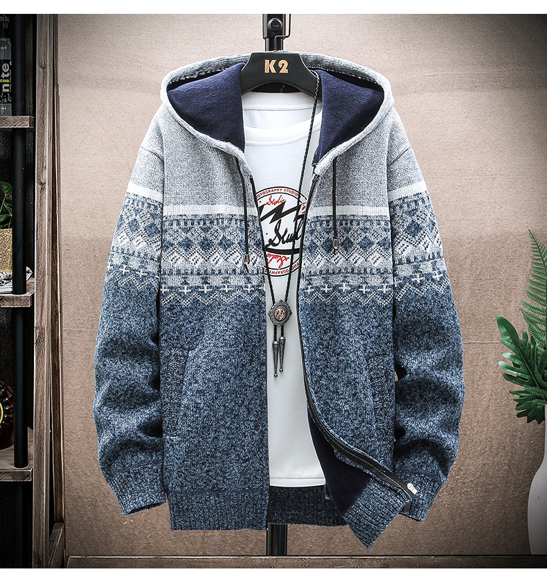 2024 새로운 가을, 겨울 대외 무역 남성 캐주얼 재킷 유럽과 미국의 후드 가디건 니트 두꺼운 벨벳 스웨터 남성스토어 가기
