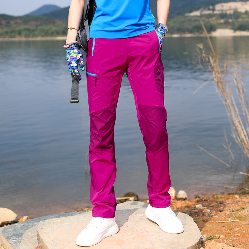 야외 경량 속건 바지 여성용 바지 컬러 매칭 탄성 슬림핏 슬리밍 스포츠 등산 통기성 태양 보호 여름