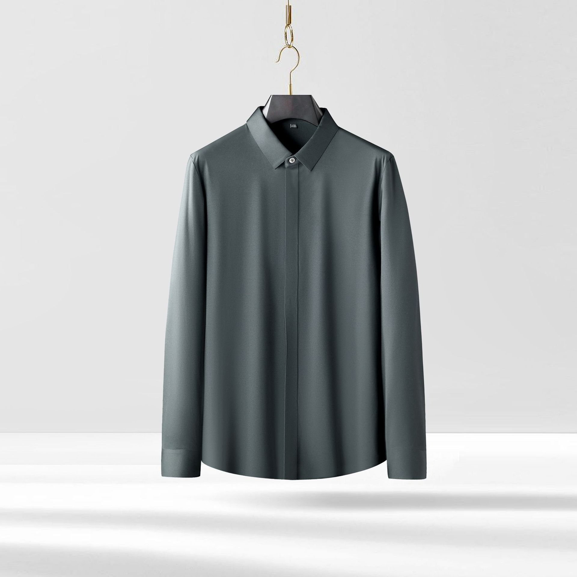 남성용 셔츠, 다림질 필요 없는 실크처럼 부드러운 무봉제 심플한 숨은 단추 남성복 비즈니스 캐주얼 아이스 실크 229 다용도 셔츠