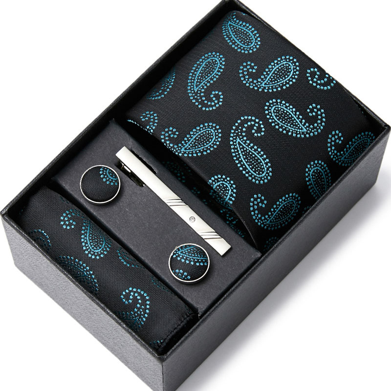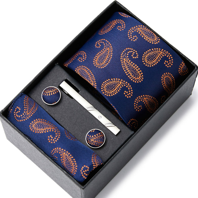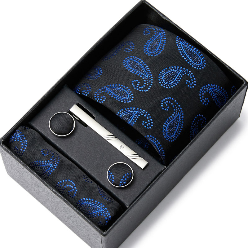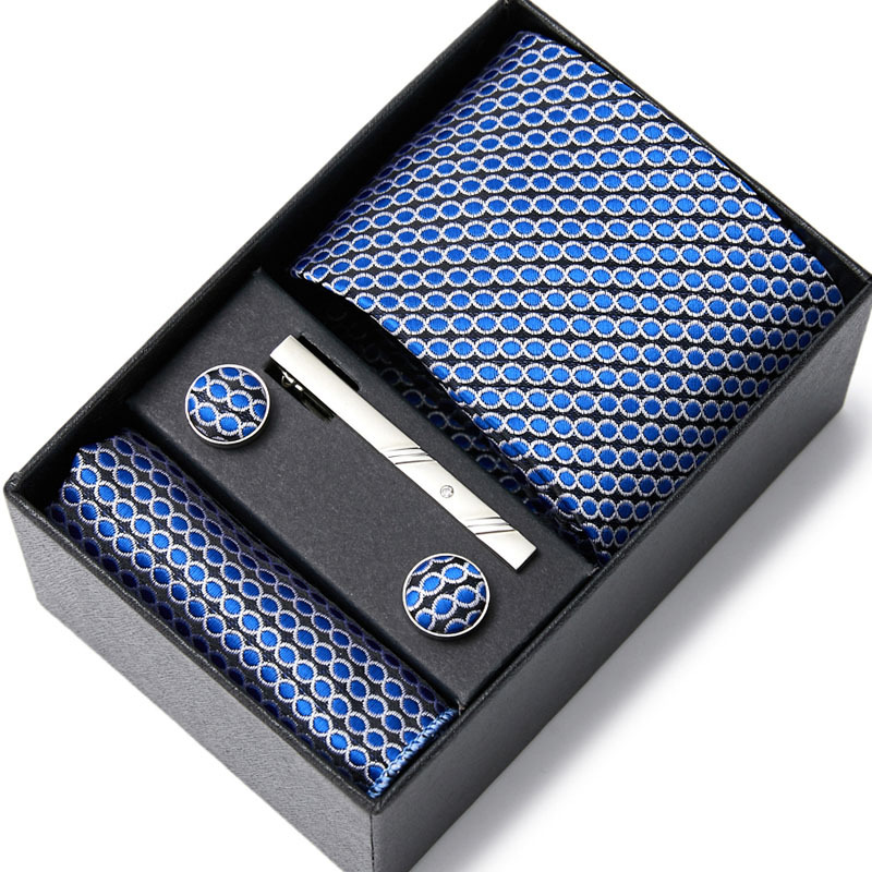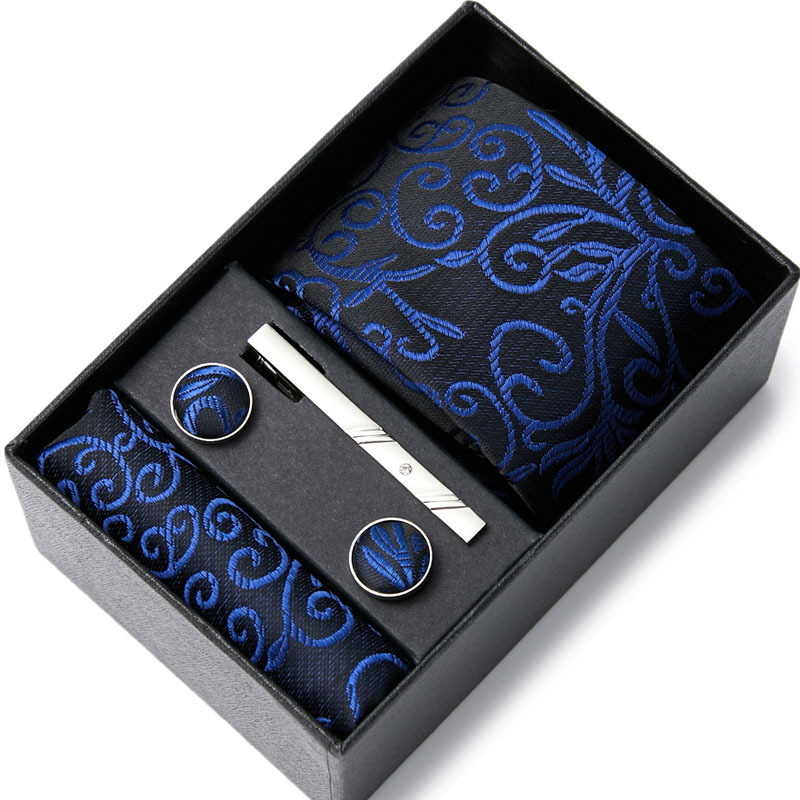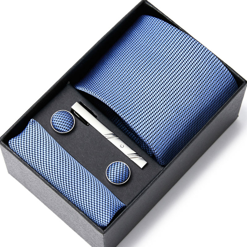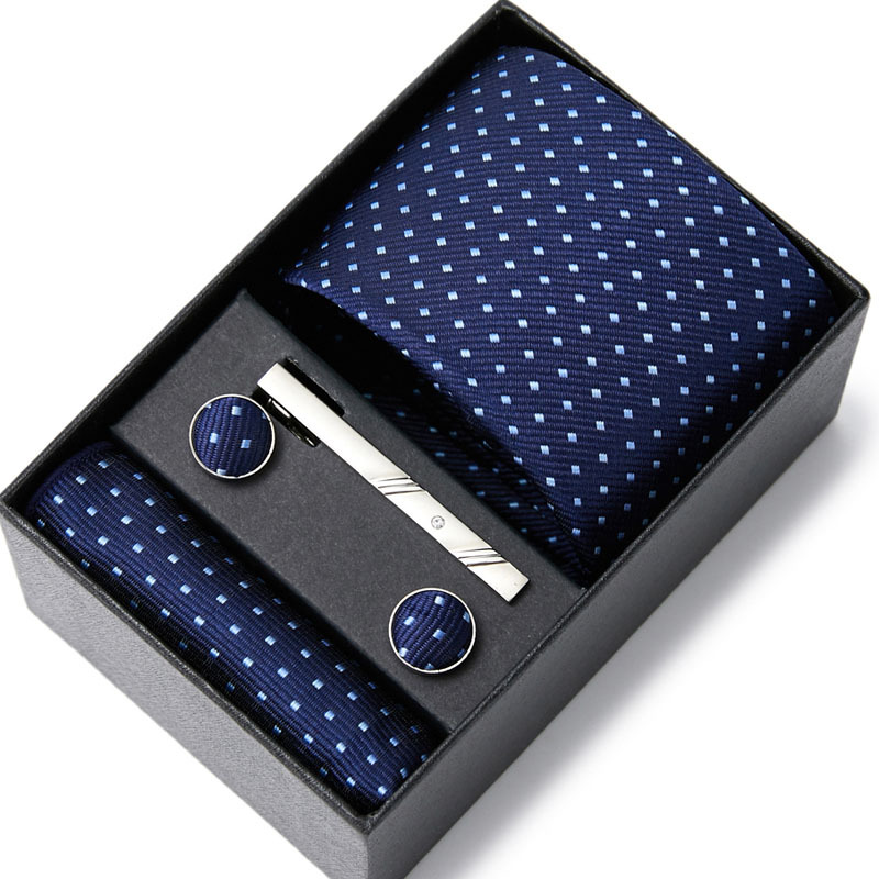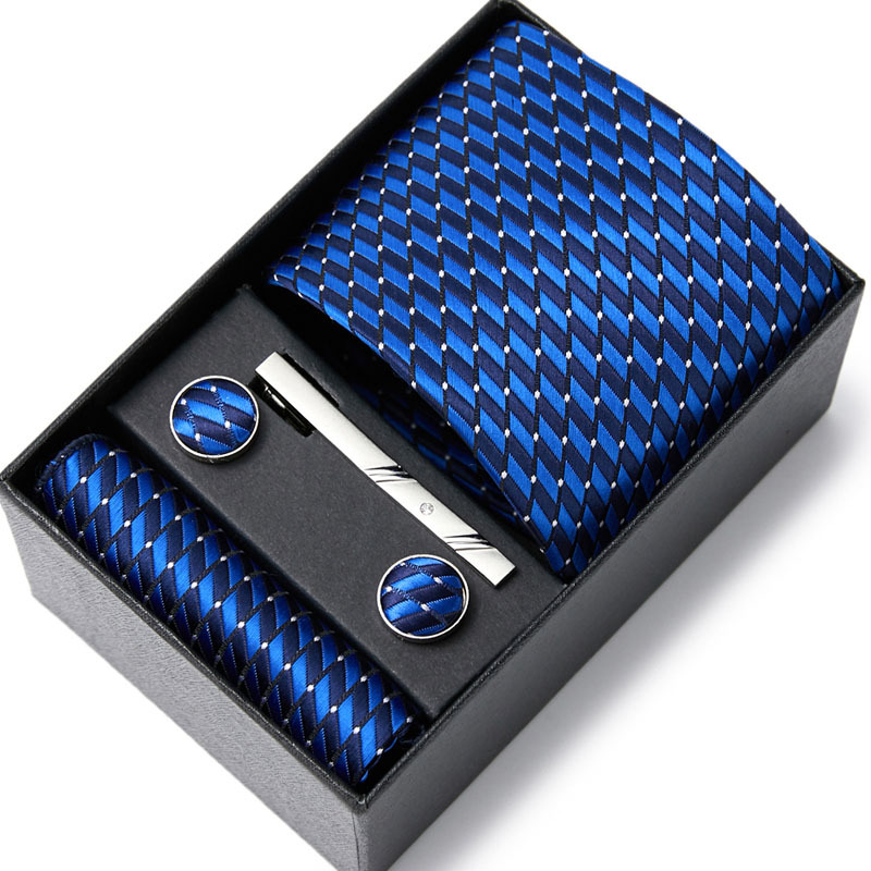 넥타이 남자의 비즈니스 전문 원피스 세트 블루 스트라이프 선물 상자 폴리 에스터 7.5cm 비즈니스 선물 새로운 스타일스토어 가기