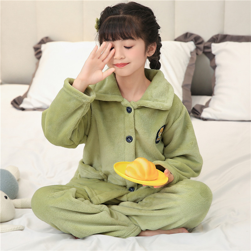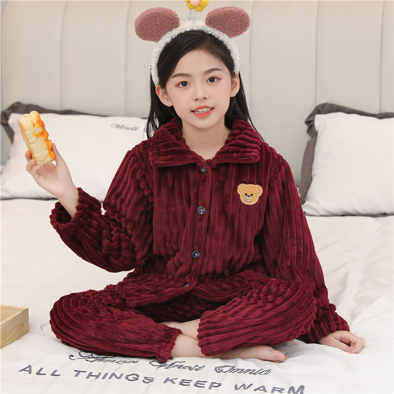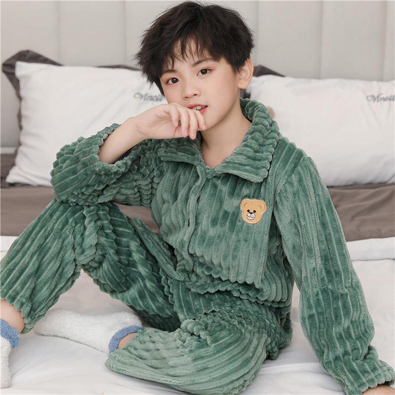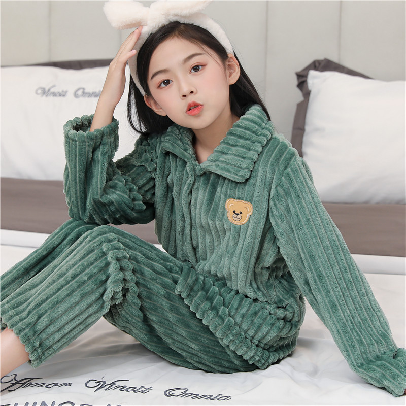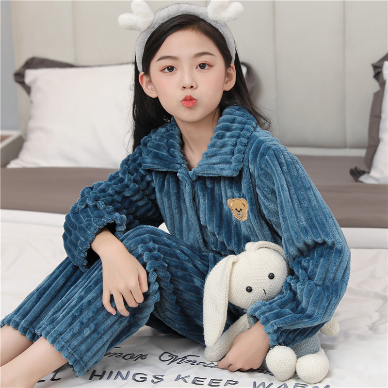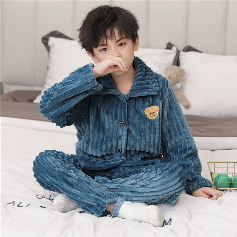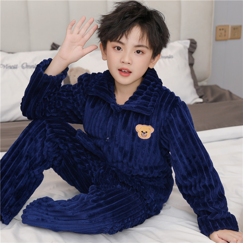 소년 소녀 아기 가을과 겨울 두꺼운 겨울 잠옷 세트 어린이 플란넬 가정 옷 가을 산호 양털스토어 가기