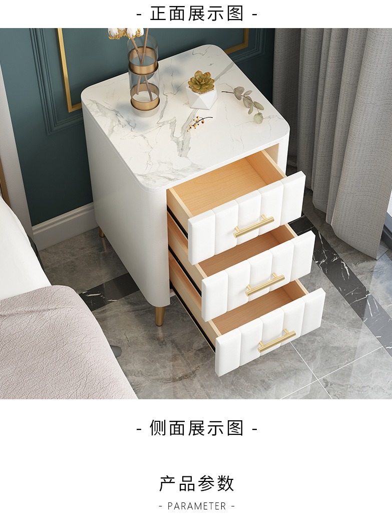 북유럽 조명 럭셔리 대리석 침대 옆 탁자 인터넷 인기있는 스타일 플래너리 천 서랍 침대 옆 탁자 침실 수납 캐비닛
