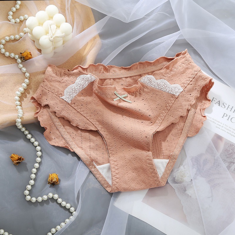 자카드 95% 면 여성 속옷, 순면 가랑이, 러플 장식, 중간 허리, 소녀용 통기성 반바지, 가을 겨울 스타일, 소녀 스타일스토어 가기