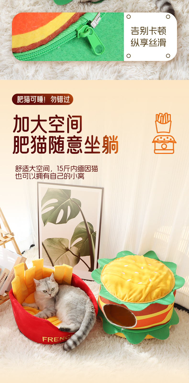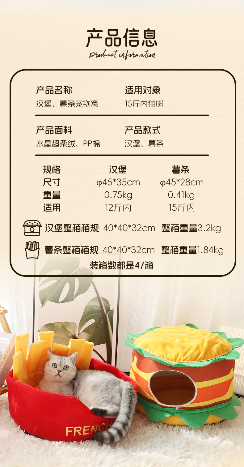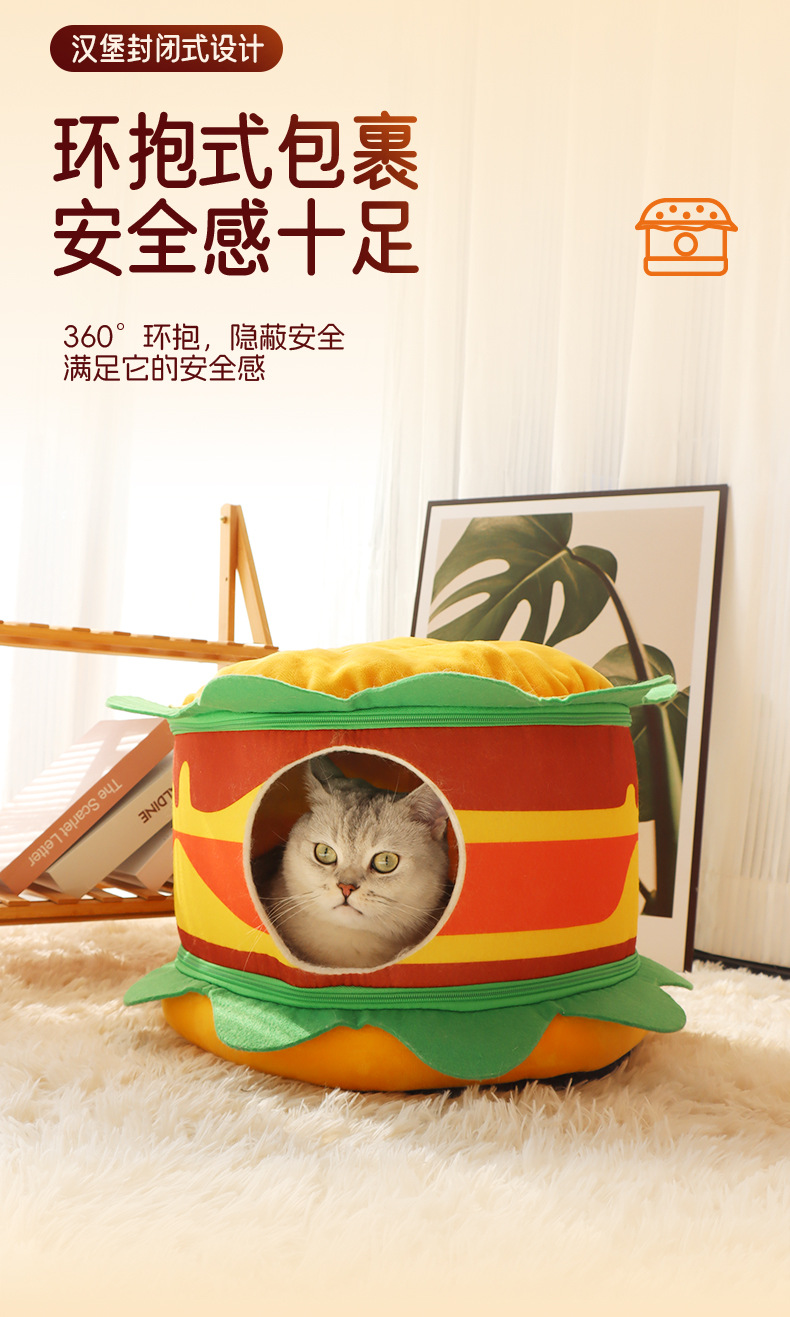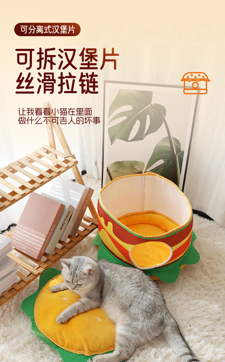 사계절 고양이 개집, 애완 동물 두꺼운 고양이 집, 햄버거 개집, 폐쇄형 고양이 매트, 빌라 소형 개 개집, 맞춤형스토어 가기