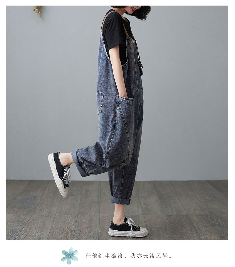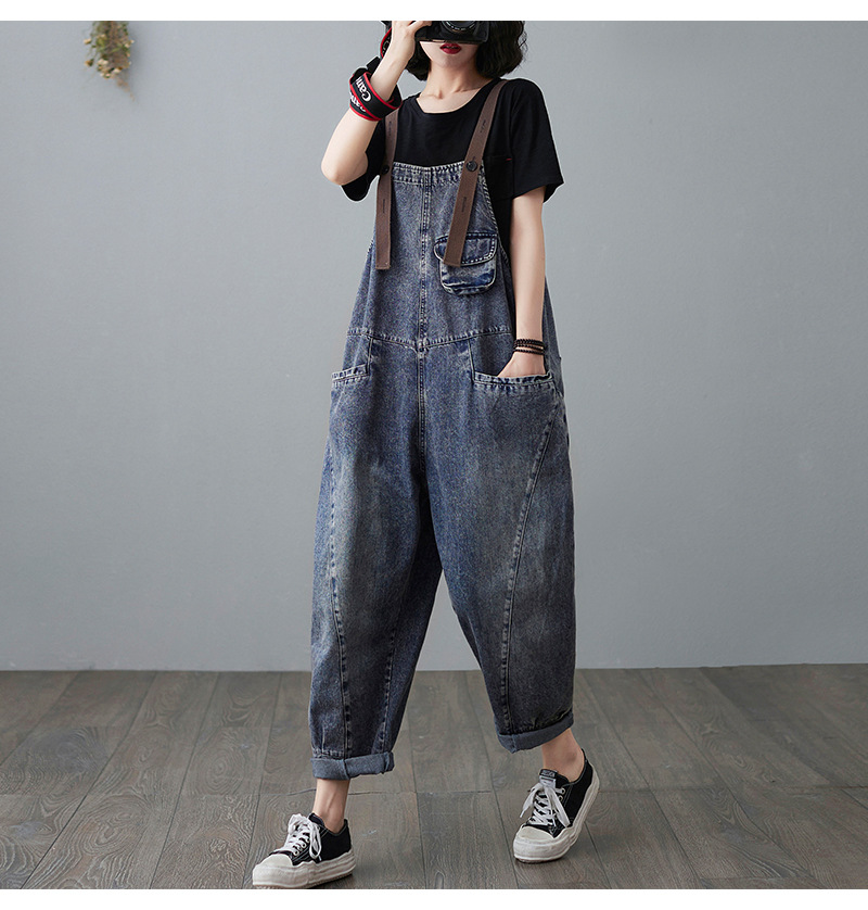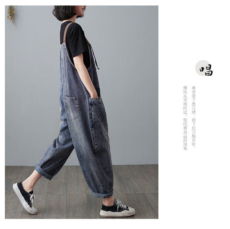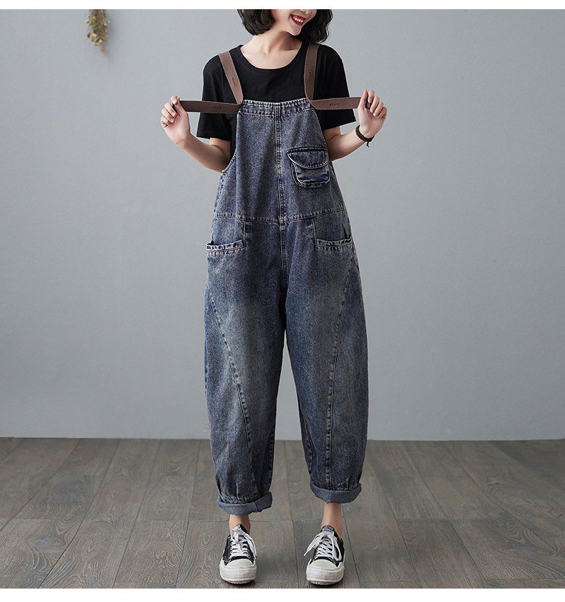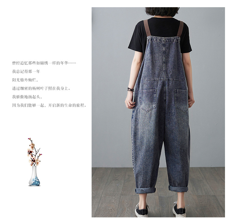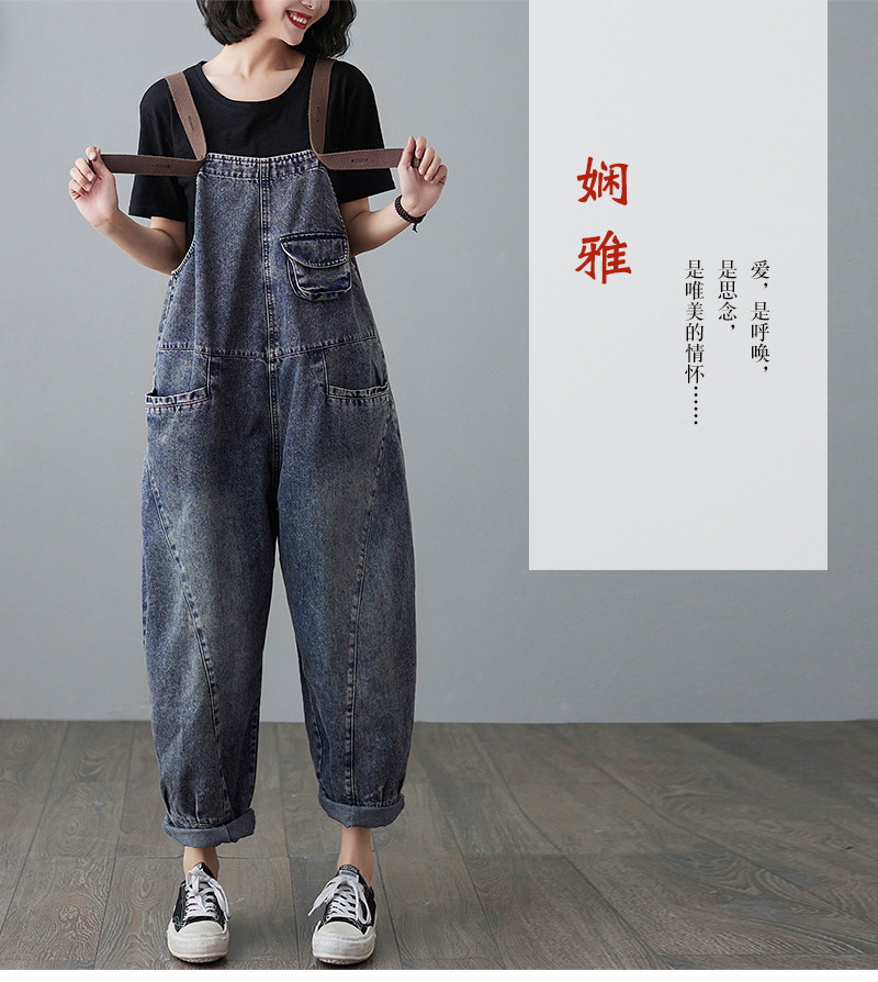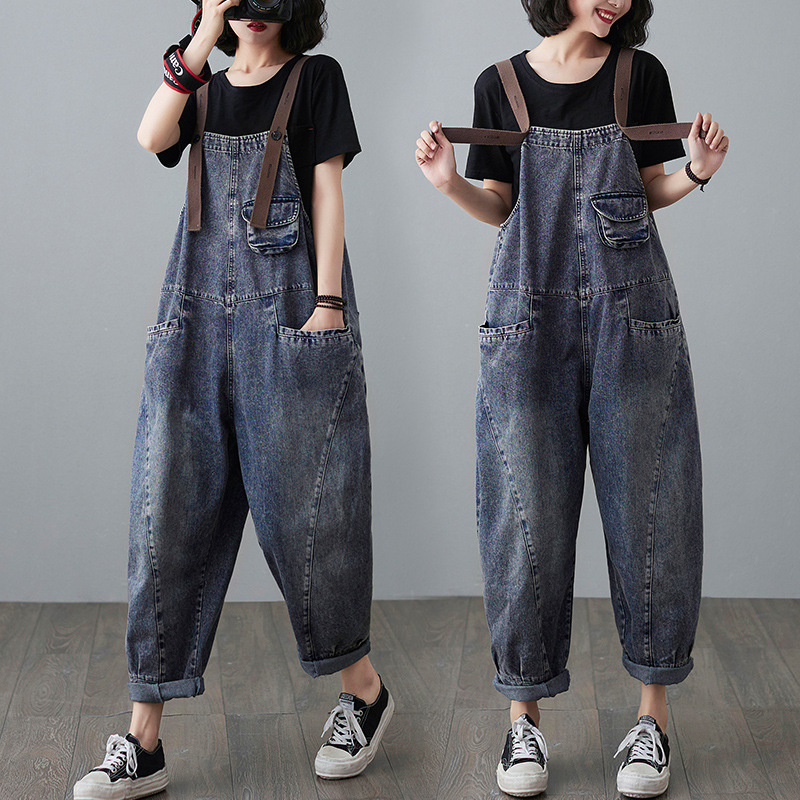 나이 감소 데님 멜빵 바지 여성의 가을 느슨한 한국 스타일 겉옷 멜빵 바지 슬림핏 점프 수트 여성 청바지스토어 가기