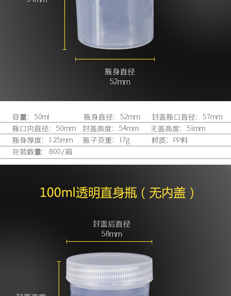 산성 및 알칼리성 투명 넓은 입 병 잉크 병 플라스틱 병 PP 샘플 탱크 화학 병 샘플 병 서브 병