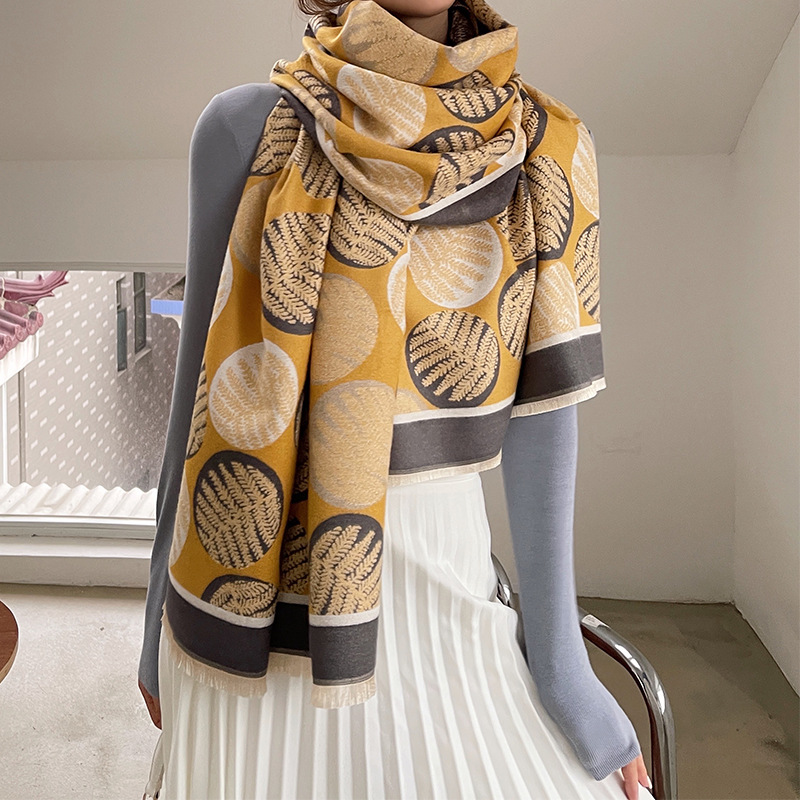 대형 도트 모조 캐시미어 에어컨 숄 여성용 유럽과 미국 분위기 확대 두꺼운 모조 캐시미어 짧은 수염 자카드 스카프스토어 가기