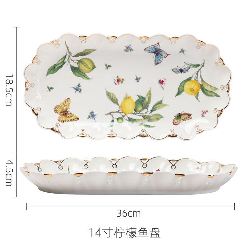 • 12inch 레몬꽃 직사각형 접시