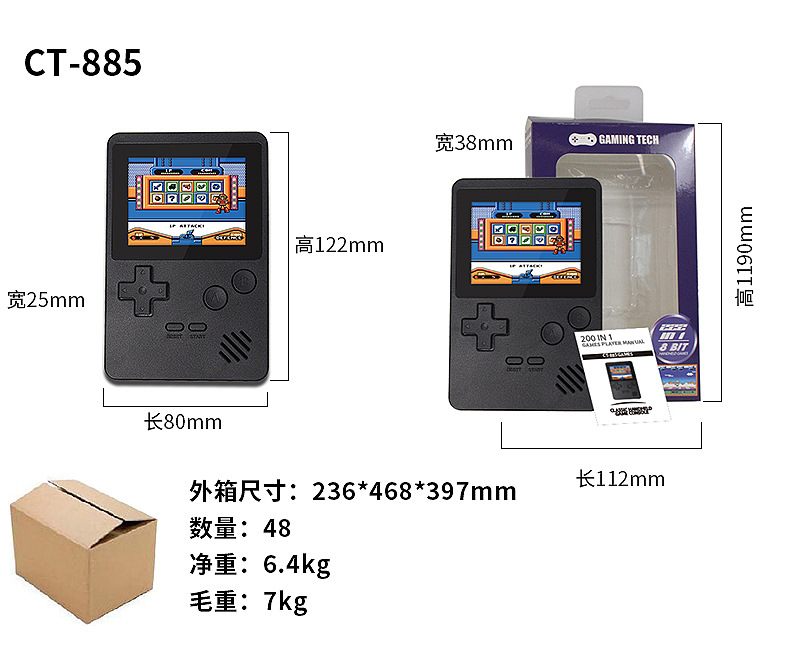 대외 무역 CT-885 미니 게임 기계 포켓 게임기 핸드 헬드 전자 게임 국경 제조 업체스토어 가기