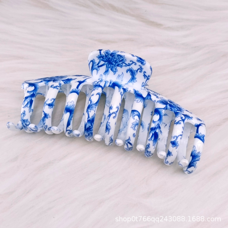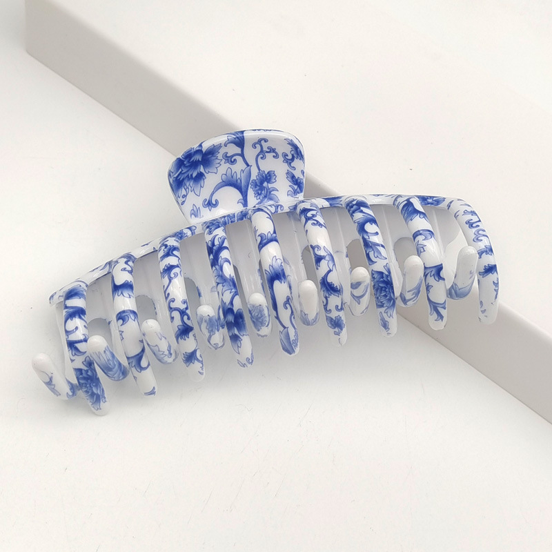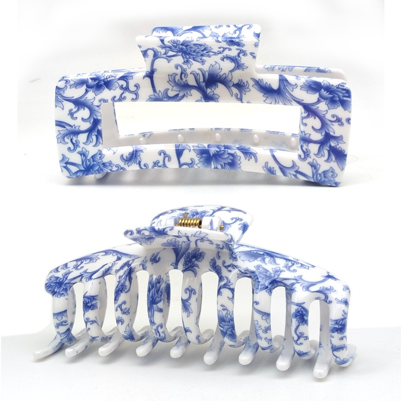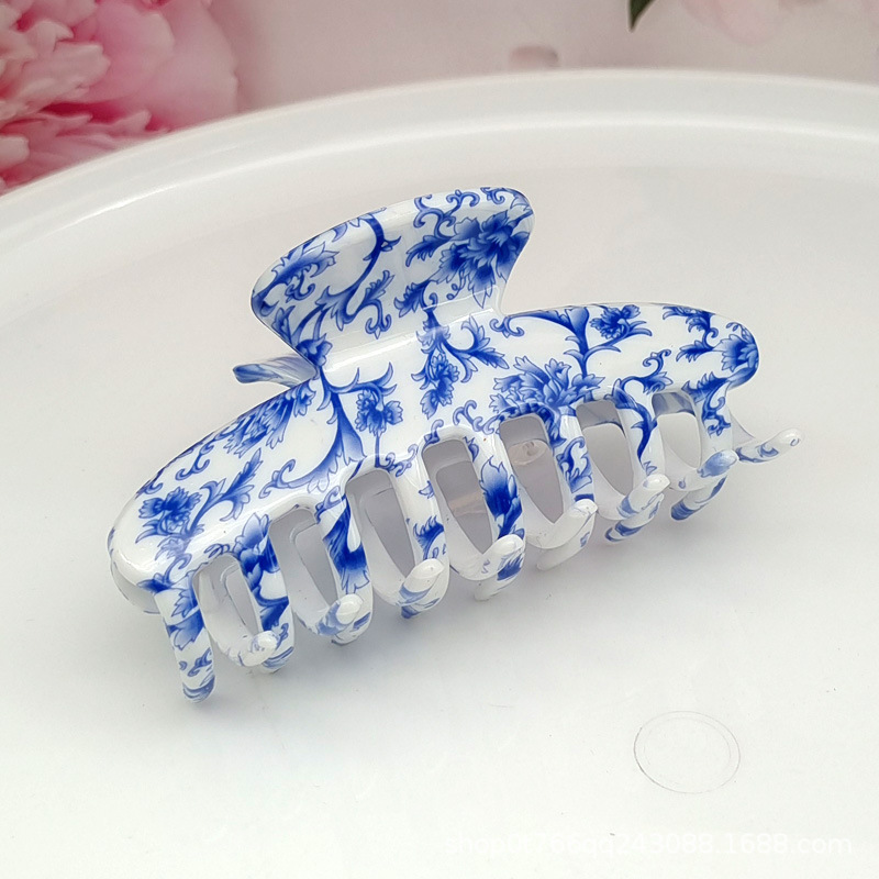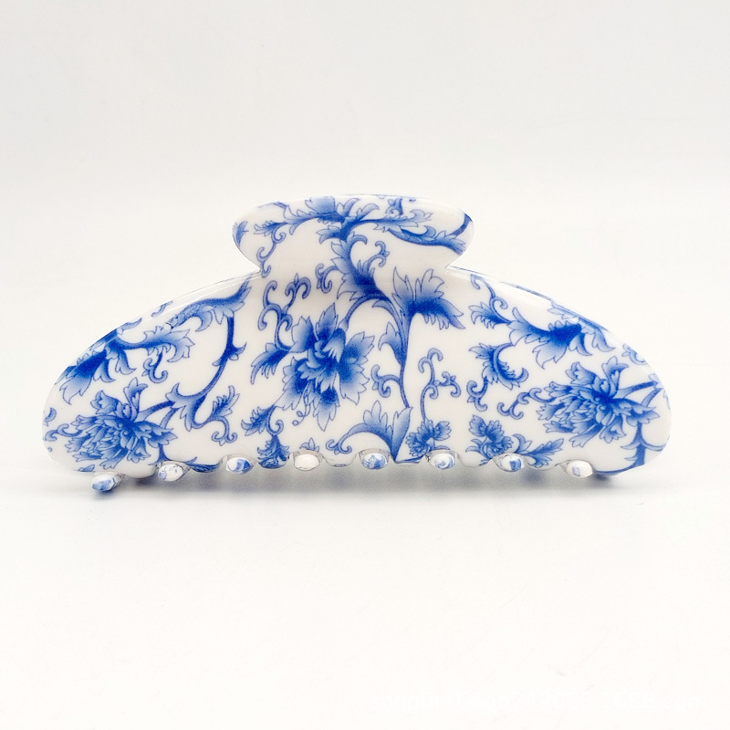 청화도자기 머리핀 대형 집게핀 프린트 집게핀 헤어핀 헤어 액세서리 해외 무역 유럽 및 미국 헤어 액세서리