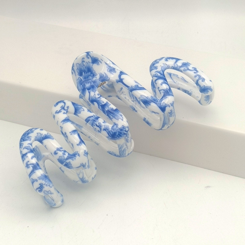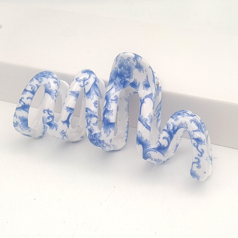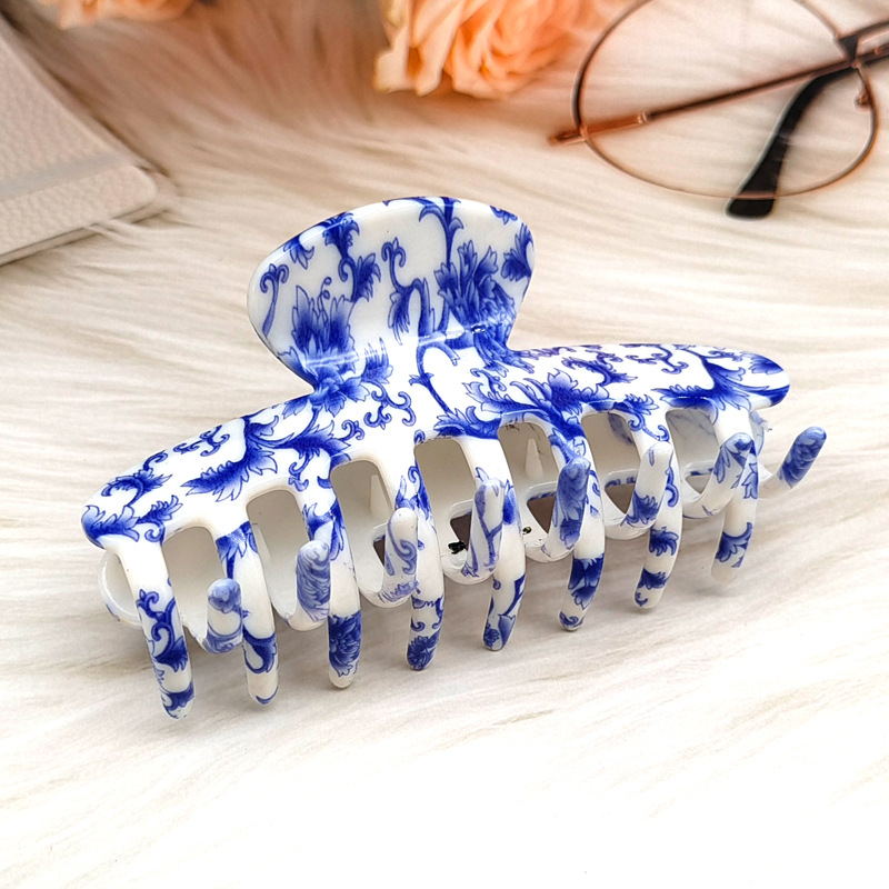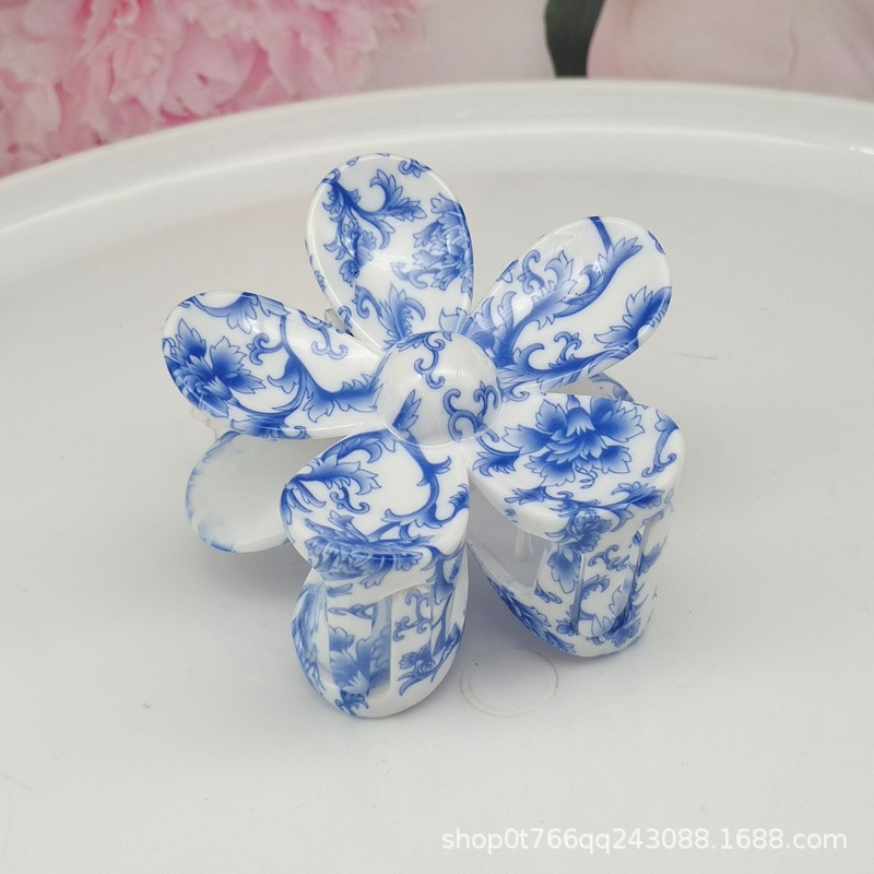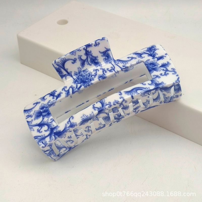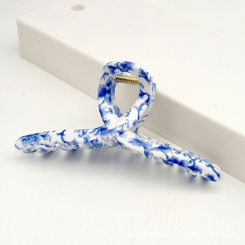 청화도자기 머리핀 대형 집게핀 프린트 집게핀 헤어핀 헤어 액세서리 해외 무역 유럽 및 미국 헤어 액세서리