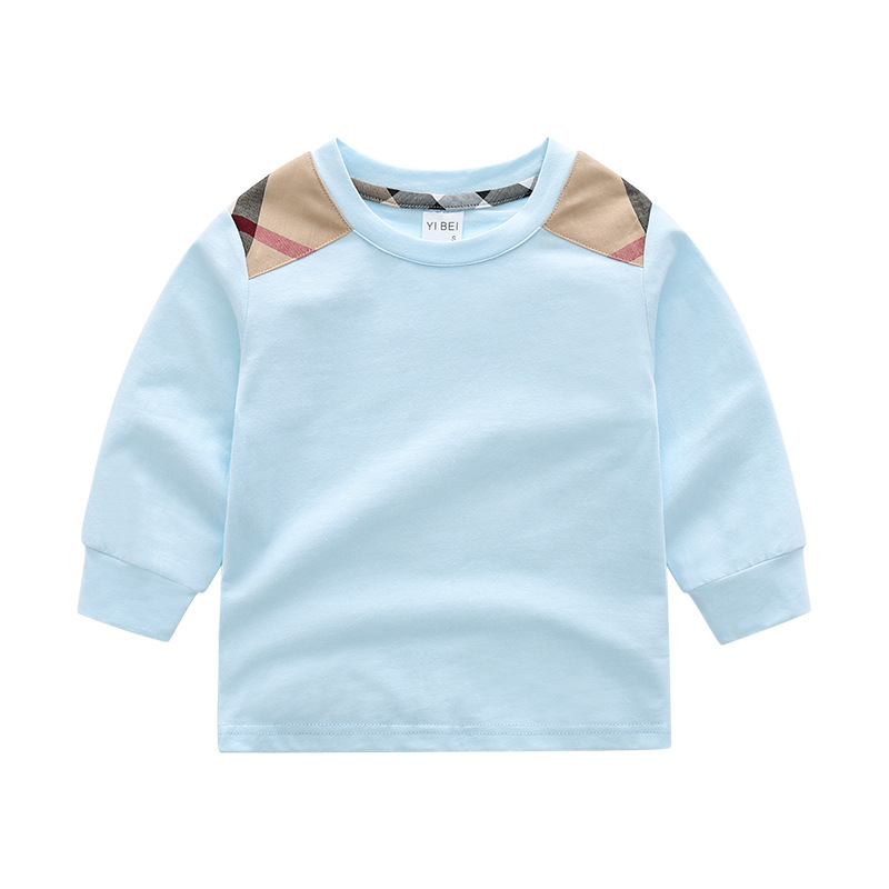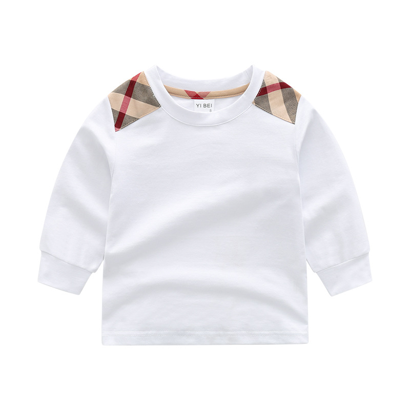 어린이용 순면 티셔츠, 남아 여아 모두에게 적합한 베이직 레이어드 셔츠, 2025 가을 스타일, 아기용 긴팔 라운드넥 상의, 세련된 체크무늬스토어 가기