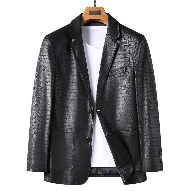 가죽 재킷 남성 가을 겨울 남성복 부드러운 가죽 정장 비즈니스 캐주얼 투버튼 청년 가죽 정장 재킷 다용도 경량 비즈니스