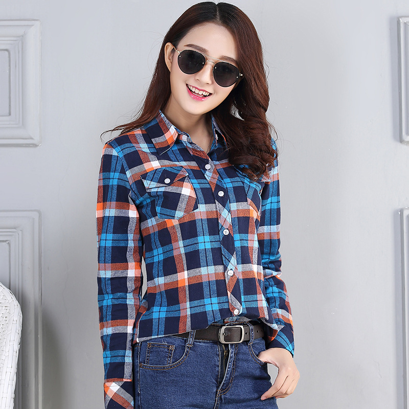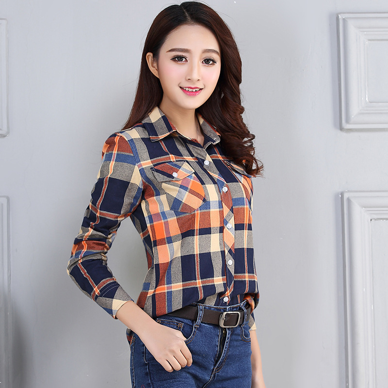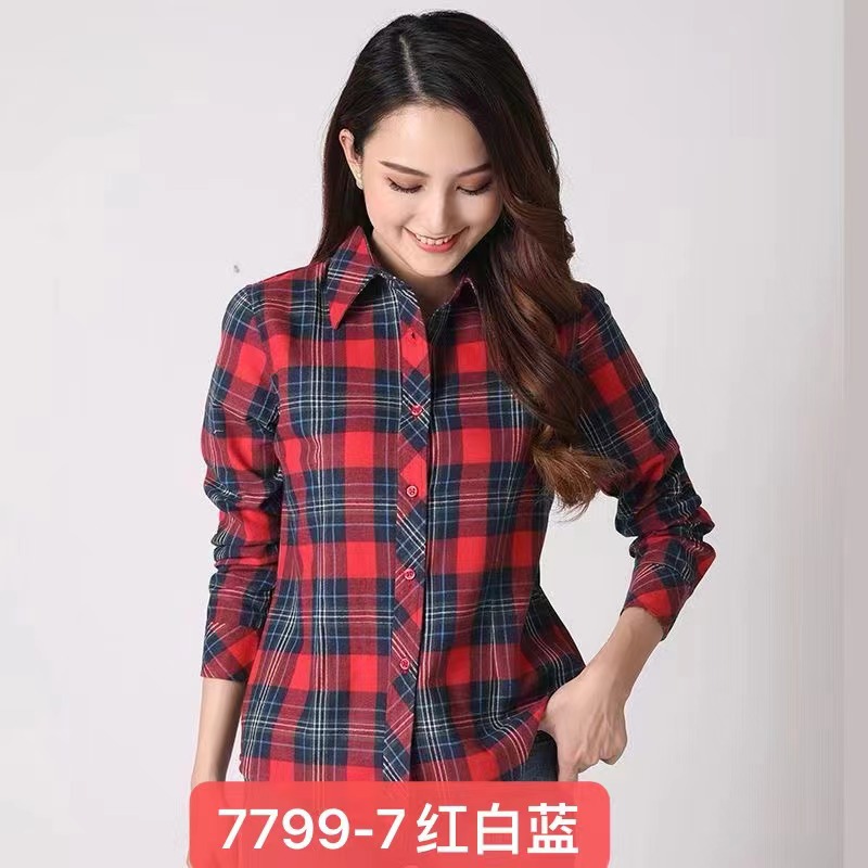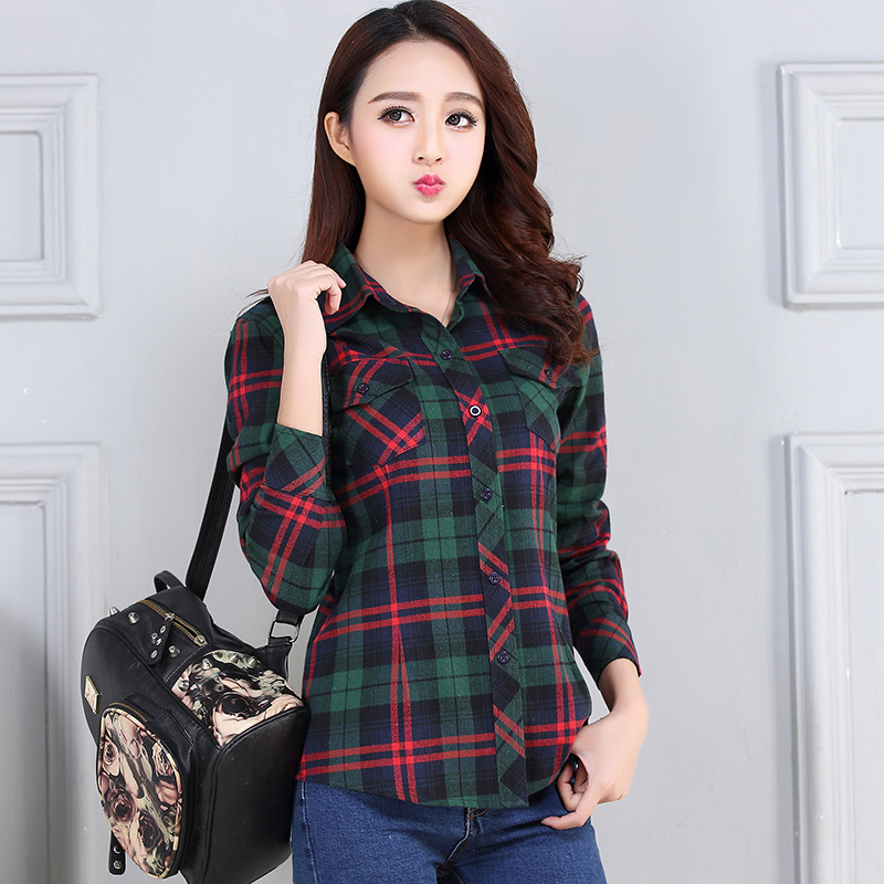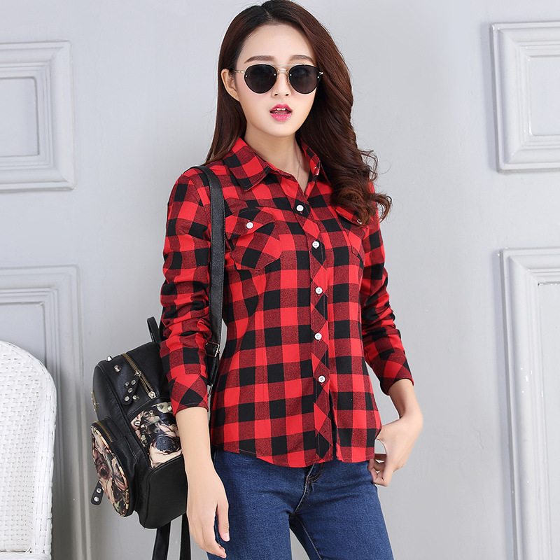 한국 스타일 체크무늬 셔츠 여성 슬림핏 면 긴팔 이너웨어 학생용 빅사이즈 여성용 자켓 다용도스토어 가기
