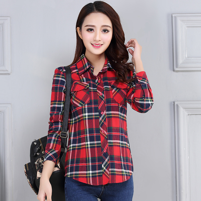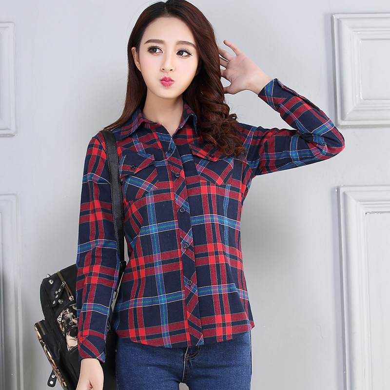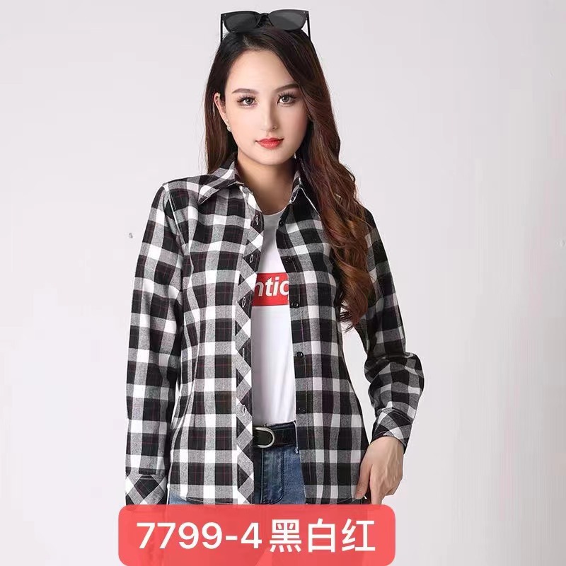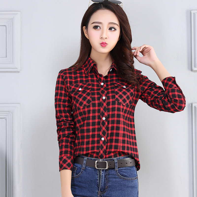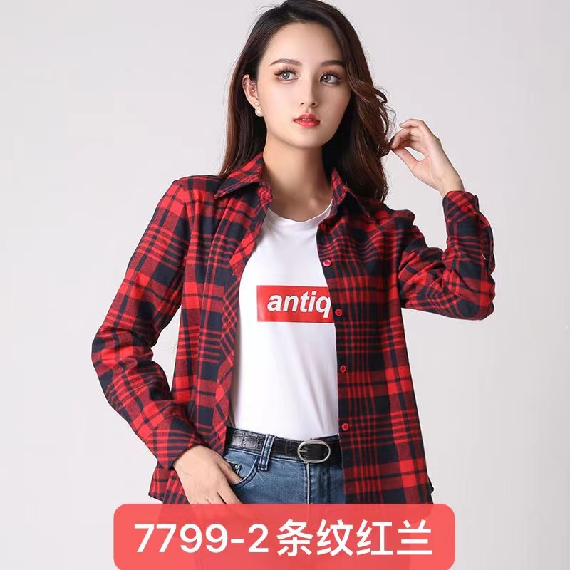 한국 스타일 체크무늬 셔츠 여성 슬림핏 면 긴팔 이너웨어 학생용 빅사이즈 여성용 자켓 다용도