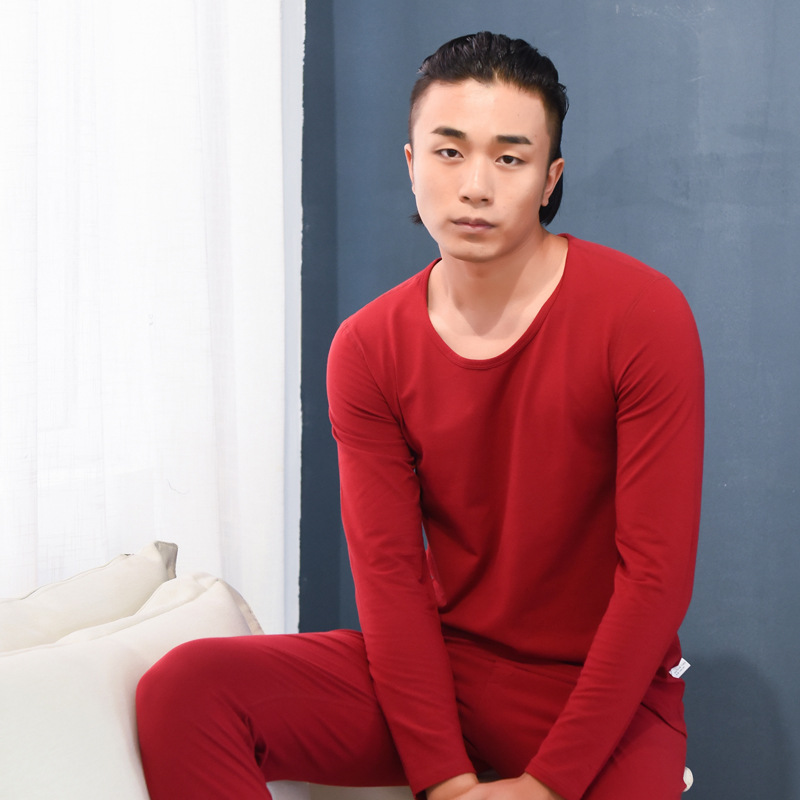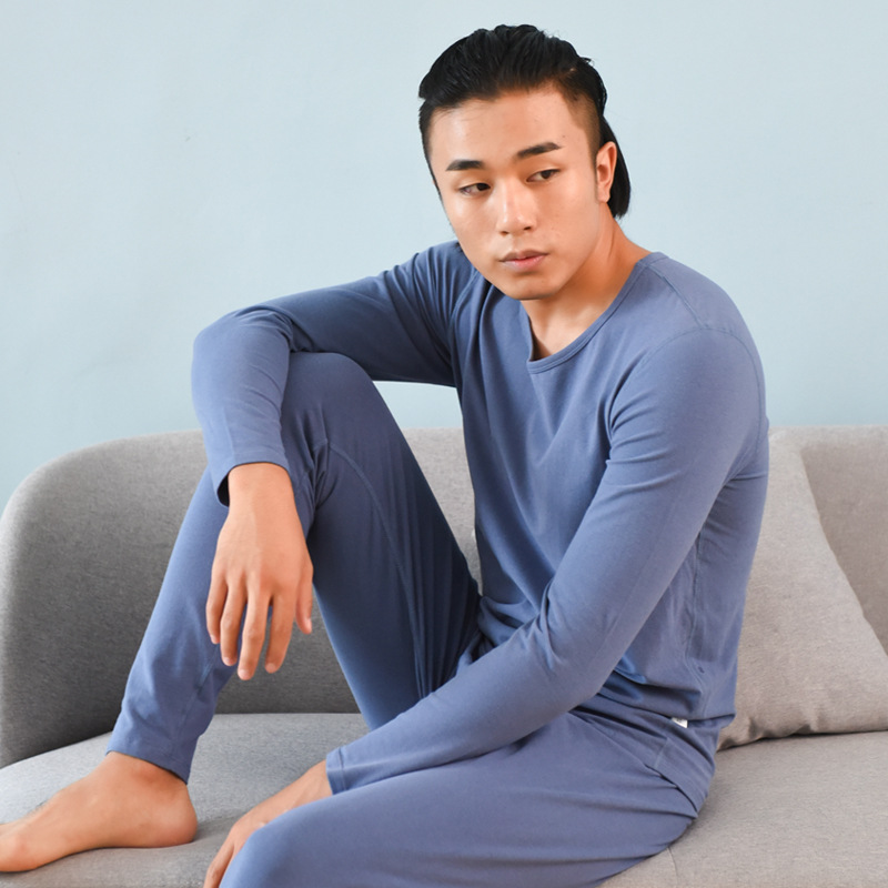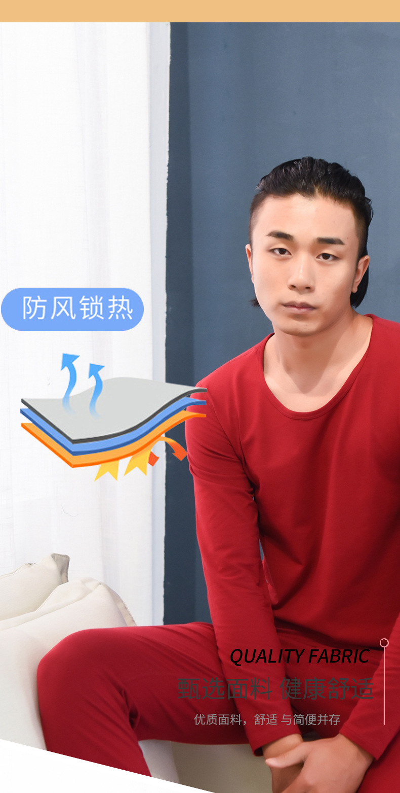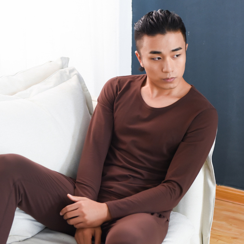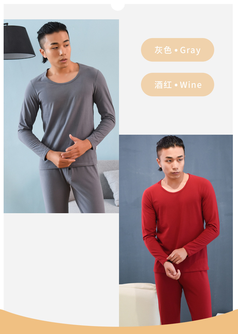 남자의 면 원활한 크루넥 속옷 세트 남자의 모든 일치 가을 의류 및 바지 봄 가을 겨울 따뜻한 기초