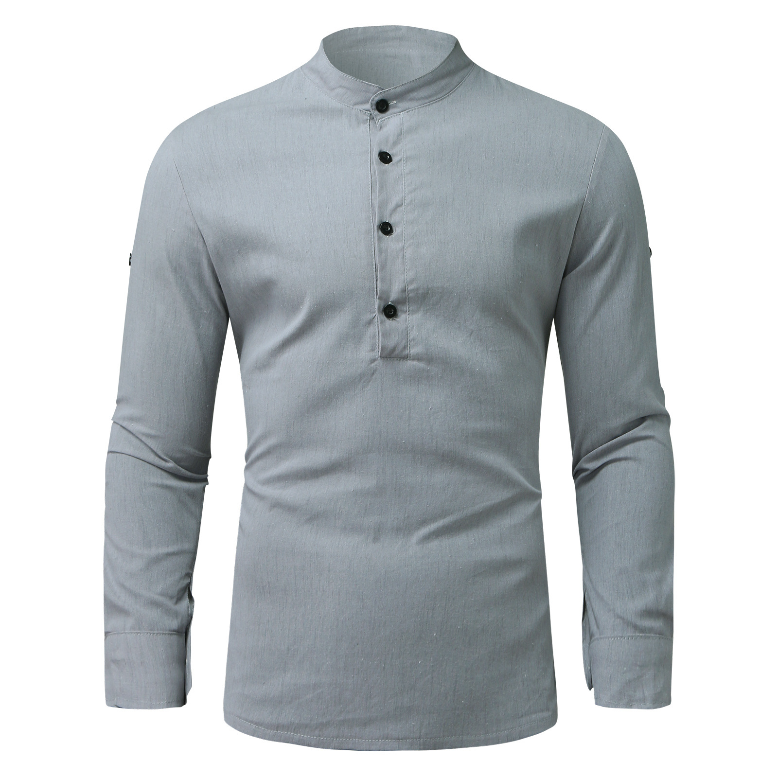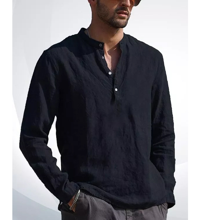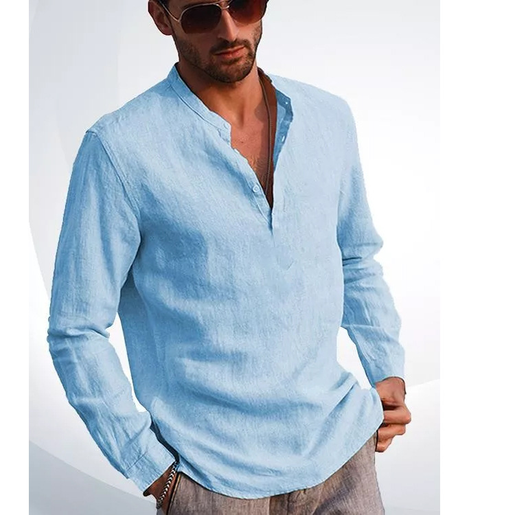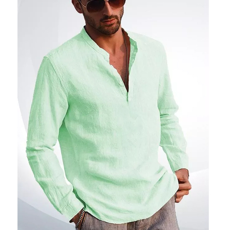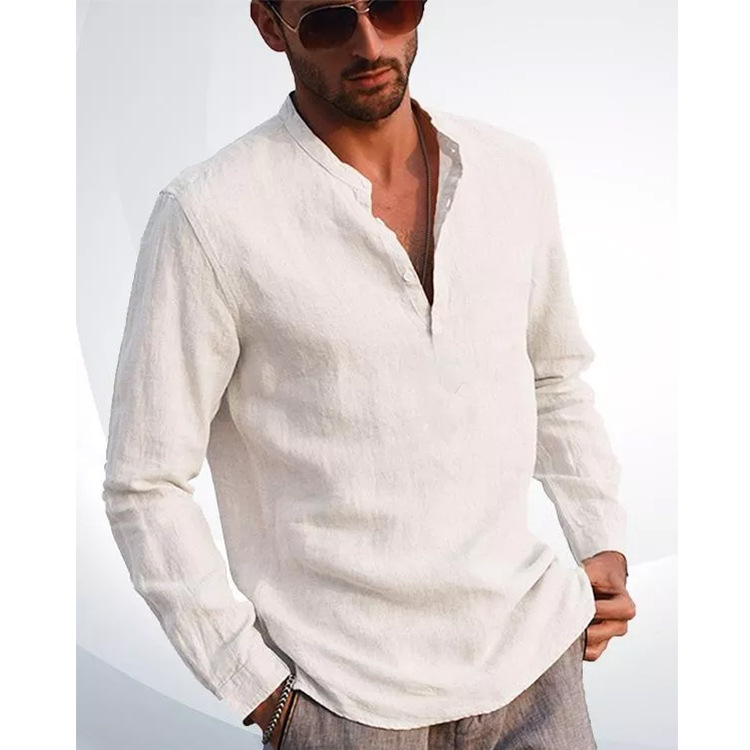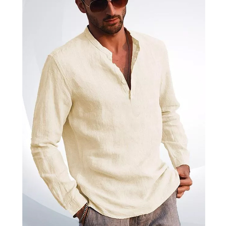 2021 AliExpress는 Amazon 유럽과 미국 남성의 긴 소매 V-neck 캐주얼 비치 린넨 셔츠 남성복을 기원합니다.스토어 가기