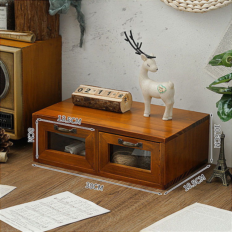 빈티지 데스크탑 컴퓨터 모니터 고가 랙 단일 레이어 나무 보관 상자 유리 서랍 드레싱 테이블 나무 상자스토어 가기