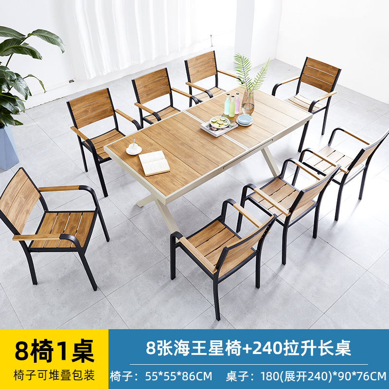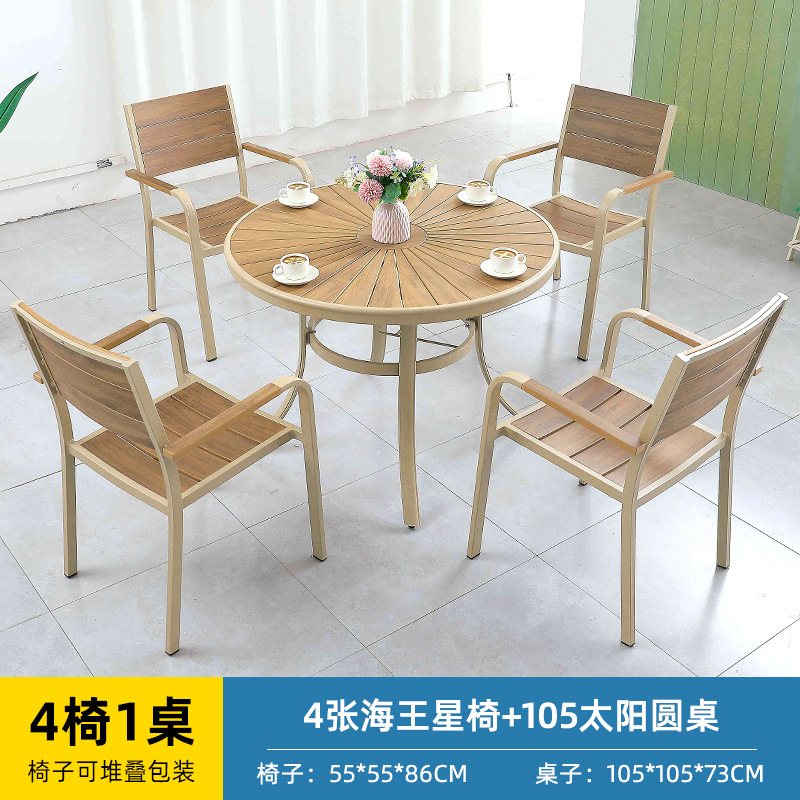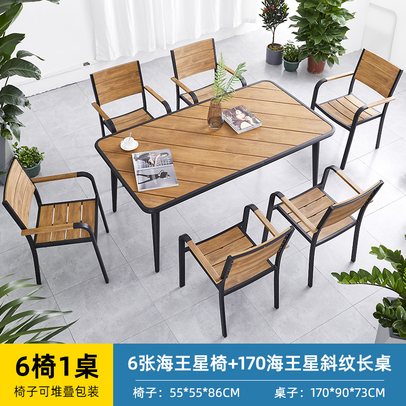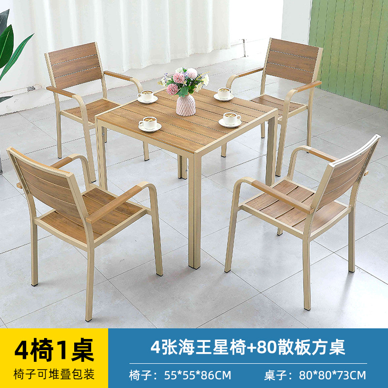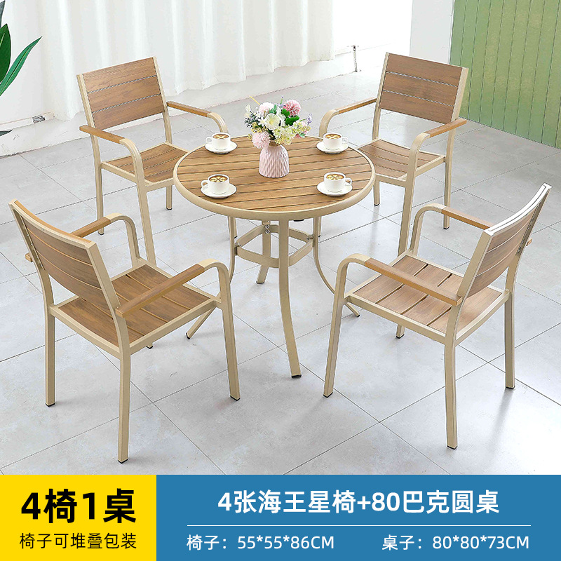 얀 게 가구 야외 플라스틱 나무 테이블과 의자 빌라 정원 알루미늄 합금 식탁 및 의자 야외 북유럽 레저 플라스틱 나무 테이블과 의자스토어 가기