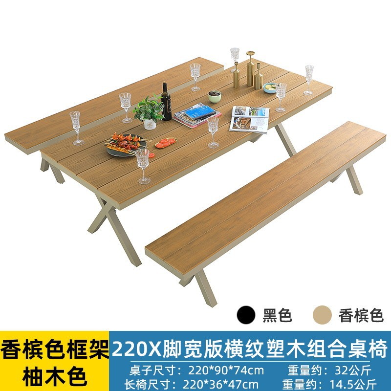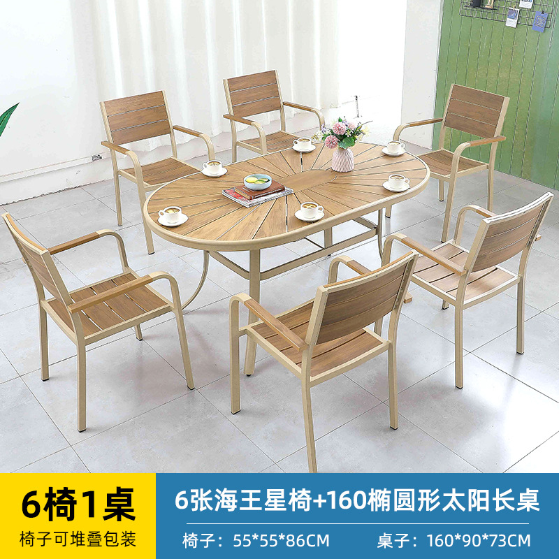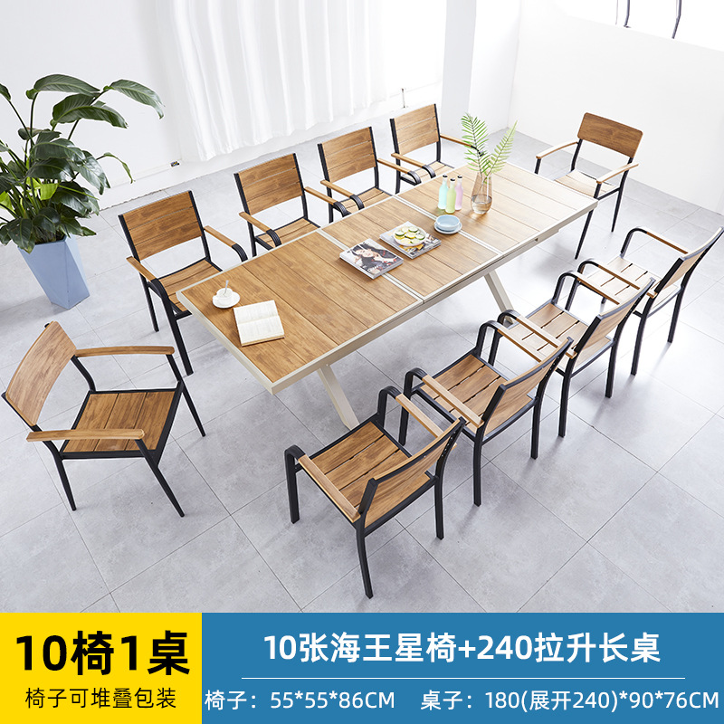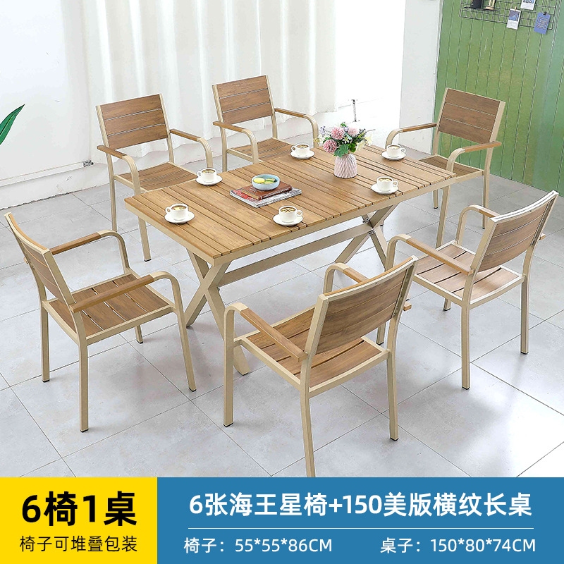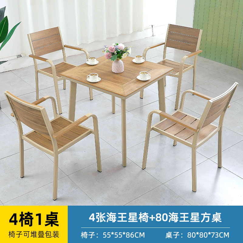 얀 게 가구 야외 플라스틱 나무 테이블과 의자 빌라 정원 알루미늄 합금 식탁 및 의자 야외 북유럽 레저 플라스틱 나무 테이블과 의자스토어 가기