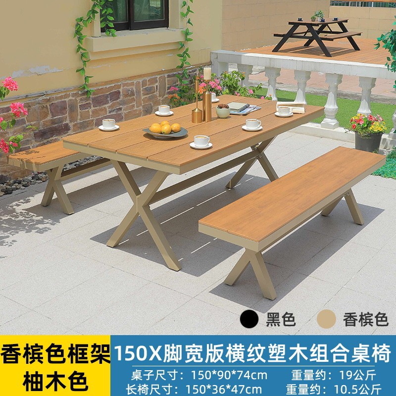 얀 게 가구 야외 플라스틱 나무 테이블과 의자 빌라 정원 알루미늄 합금 식탁 및 의자 야외 북유럽 레저 플라스틱 나무 테이블과 의자