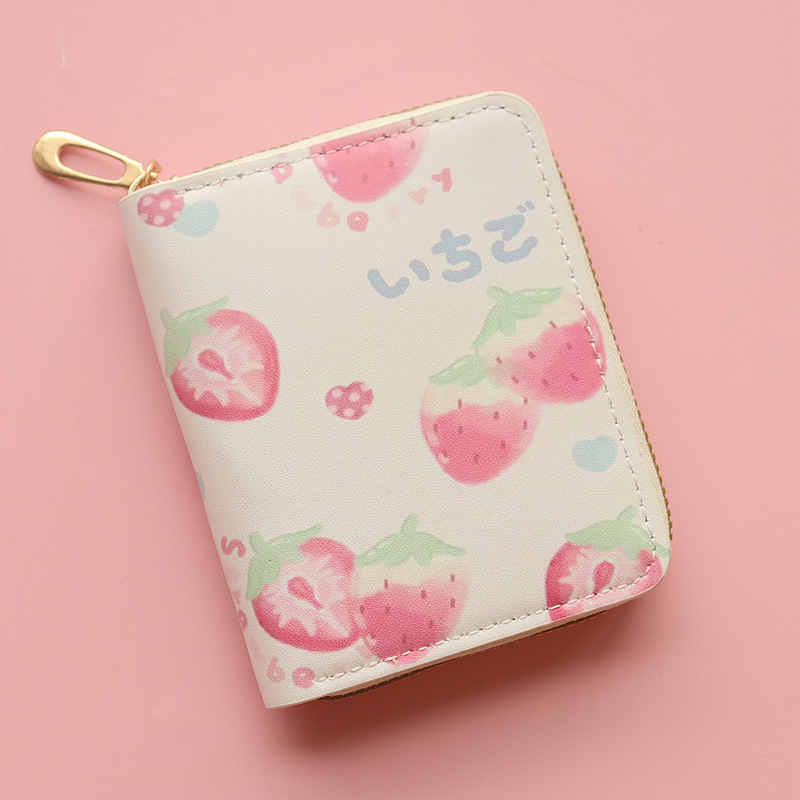 여학생을 위한 크로스보더 패션 과일 프린트 귀여운 짧은 체인 지갑, 대용량 딸기 신선한 동전 지갑