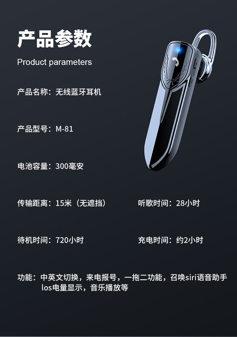 국경 간 새로운 개인 모델 M81 블루투스 헤드셋 5.2 비즈니스 슈퍼 롱 대기 킹 럭셔리카 로고 귀 교수형 리얼 무선스토어 가기
