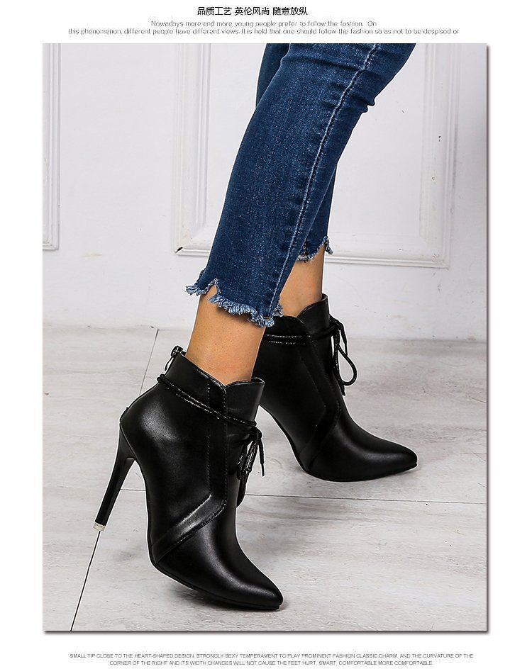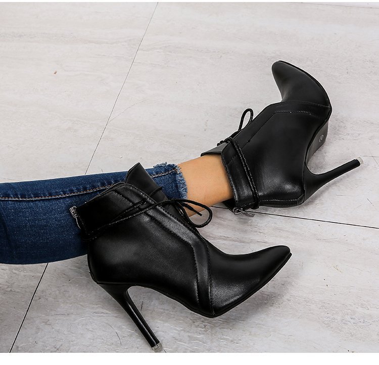 2021 겨울 새로운 여성용 가죽 부츠 뾰족한 뒤꿈치 지퍼 부츠스토어 가기