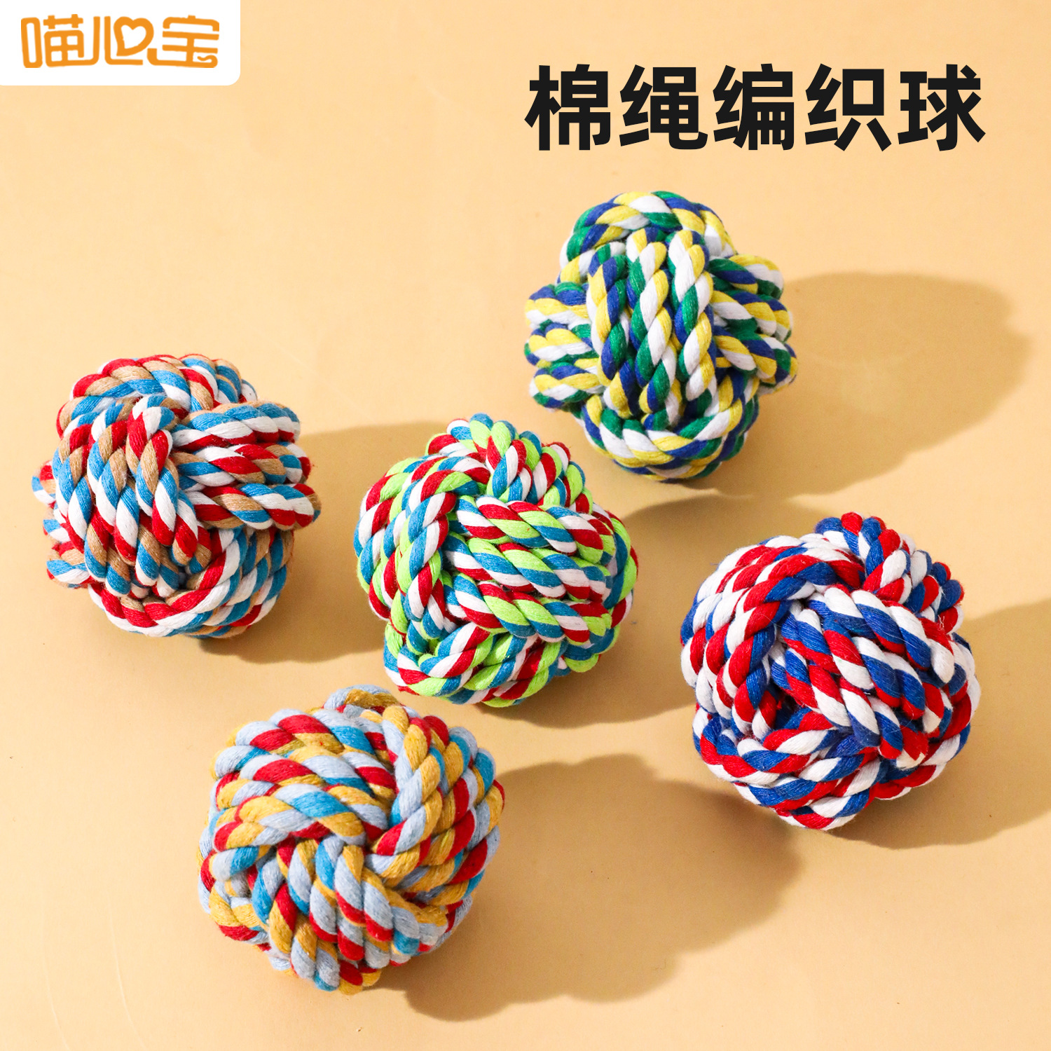 공장 재고 도매 여러 가지 빛깔의 애완 동물 면 로프 짠 장난감 물기 방지 수제 면 로프 짠 공 스몰 사이즈 55g스토어 가기